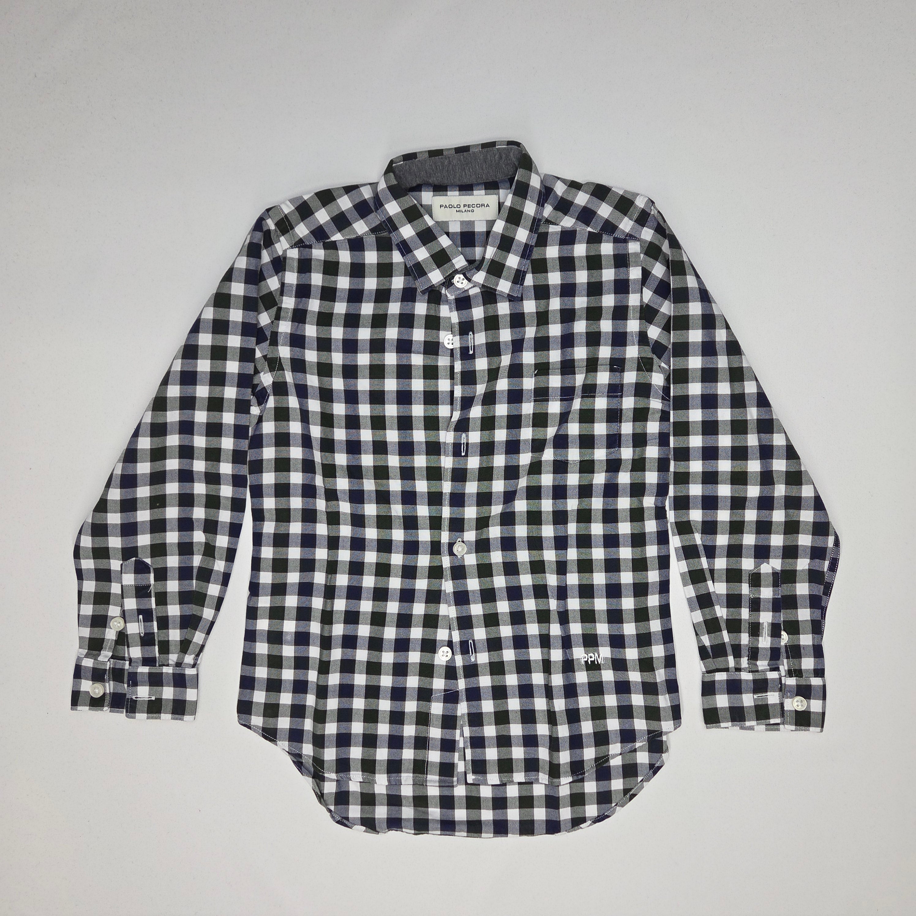 Questo elegante e versatile camicia a quadri di marca Polo Ralph Lauren è un'aggiunta preziosa al guardaroba del tuo bimbo! Realizzata in cotone morbido e traspirante, presenta un classico motivo a quadri blu e bianco, ideale per ogni occasione. Con maniche lunghe e dallo stile smart-casual, può essere indossata per una festa, una giornata a scuola o un'uscita in famiglia. Nonostante sia un pezzo usato, si presenta in ottime condizioni, pronta per essere sfoggiata con orgoglio. Un capo chic che ogni piccolo gentiluomo dovrebbe avere!
