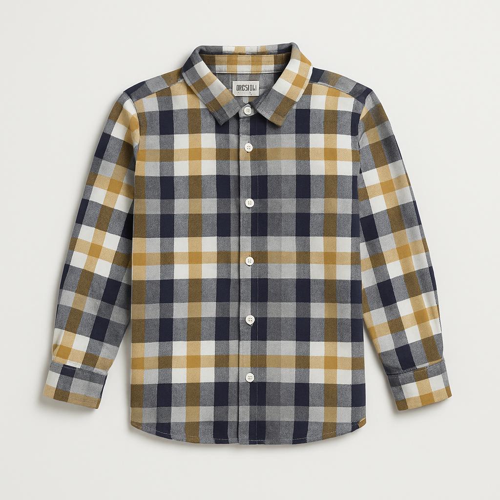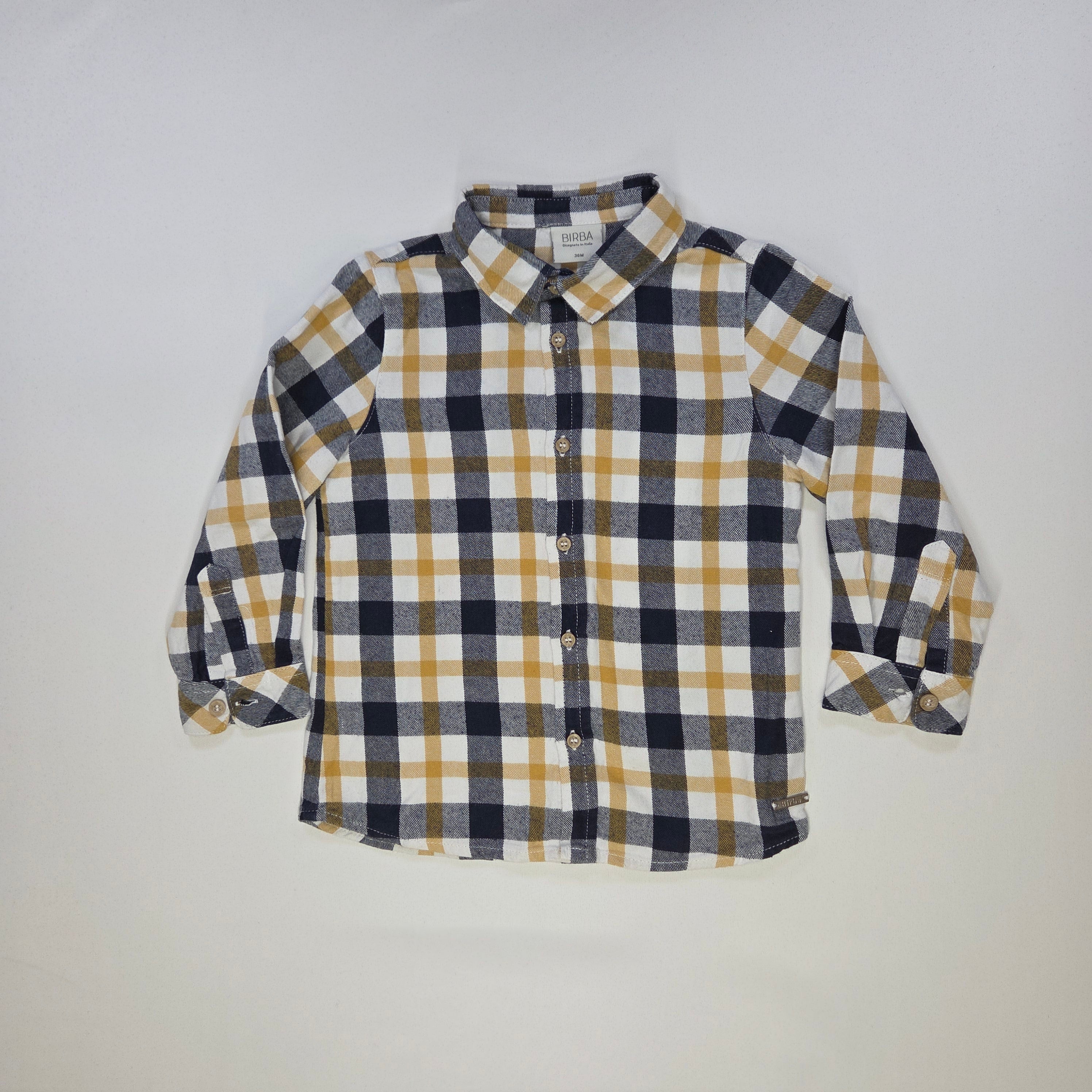 Questa bellissima camicia a quadri è un capo versatile e trendy per i piccoli esploratori! Realizzata in morbido cotone, presenta una combinazione di colori blu navy, giallo e bianco, perfetta per ogni stagione. La struttura a maniche lunghe e il colletto classico la rendono ideale per outfit casual o occasioni speciali. I dettagli curati, come le cuciture e i bottoni, aggiungono un tocco di eleganza. Nonostante sia usata, è in ottime condizioni e pronta per essere indossata da un giovane amante della moda!