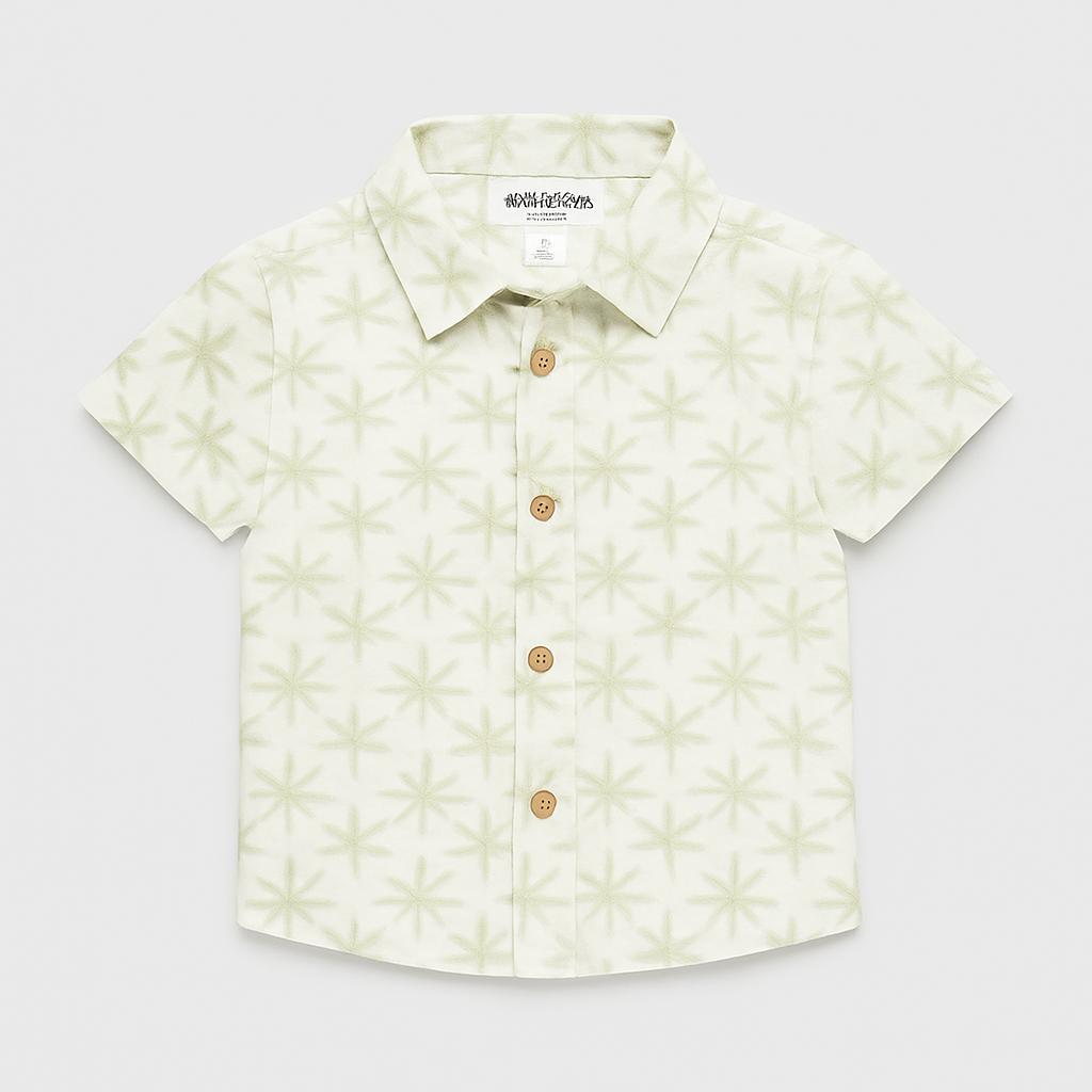 Questa adorabile camicia a maniche corte è perfetta per i piccoli esploratori! Realizzata in morbido cotone, presenta un fresco motivo di palme su uno sfondo chiaro che richiama l'estate. I bottoni frontali in legno e il colletto classico aggiungono un tocco di stile sofisticato e giocoso. Ideale per giornate al parco o eventi speciali, questo capo usato è in ottime condizioni e pronto per nuove avventure! Un must-have per i bimbi che amano essere alla moda mentre si divertono!