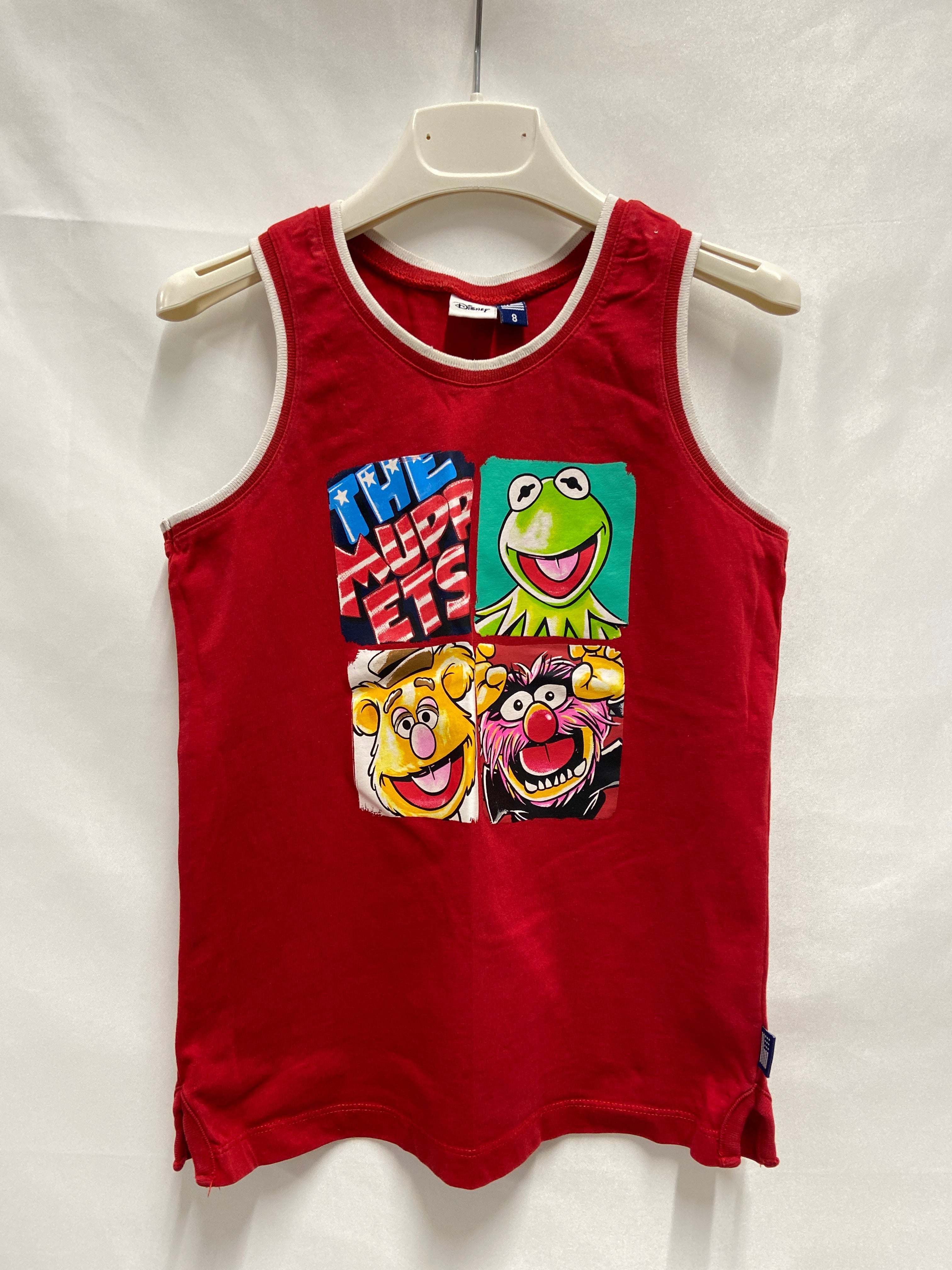 Questa simpatica canotta rossa, firmata The Muppets, è perfetta per le giornate estive di gioco e avventure! Realizzata in morbido cotone, presenta un vivace motivo con i personaggi amati da tutti: il tenero Kermit e i suoi divertenti amici. Le spalline larghe e il taglio comodo garantiscono una vestibilità fresca e senza vincoli, ideale per correre e divertirsi all'aperto. Nonostante sia un capo usato, si presenta in ottime condizioni, pronta a far sorridere il tuo bimbo. Un'aggiunta colorata e giocosa al guardaroba di ogni piccolo fan!