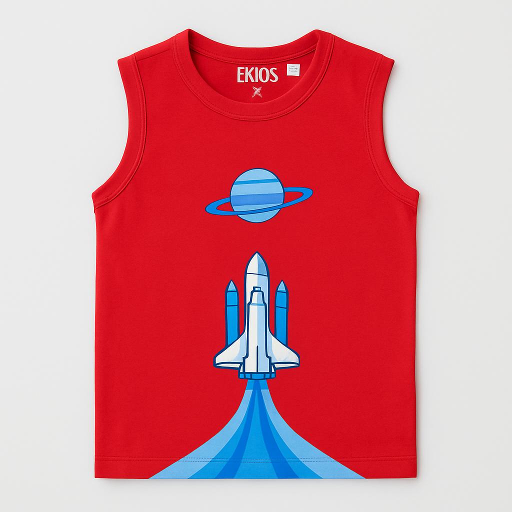 Preparati a decollare con questa fantastica canottiera rossa di EKIDS! Con un audace design che raffigura un razzo e un brillante pianeta Saturno, questa maglietta è perfetta per i piccoli esploratori dello spazio. Realizzata in un morbido cotone, offre comfort e libertà di movimento. Ideale per le giornate estive o per un pomeriggio di giochi, questa canottiera usata si trova in ottime condizioni e aggiungerà un tocco cosmico al guardaroba del tuo bambino! Un capo che stimola l'immaginazione e la fantasia!