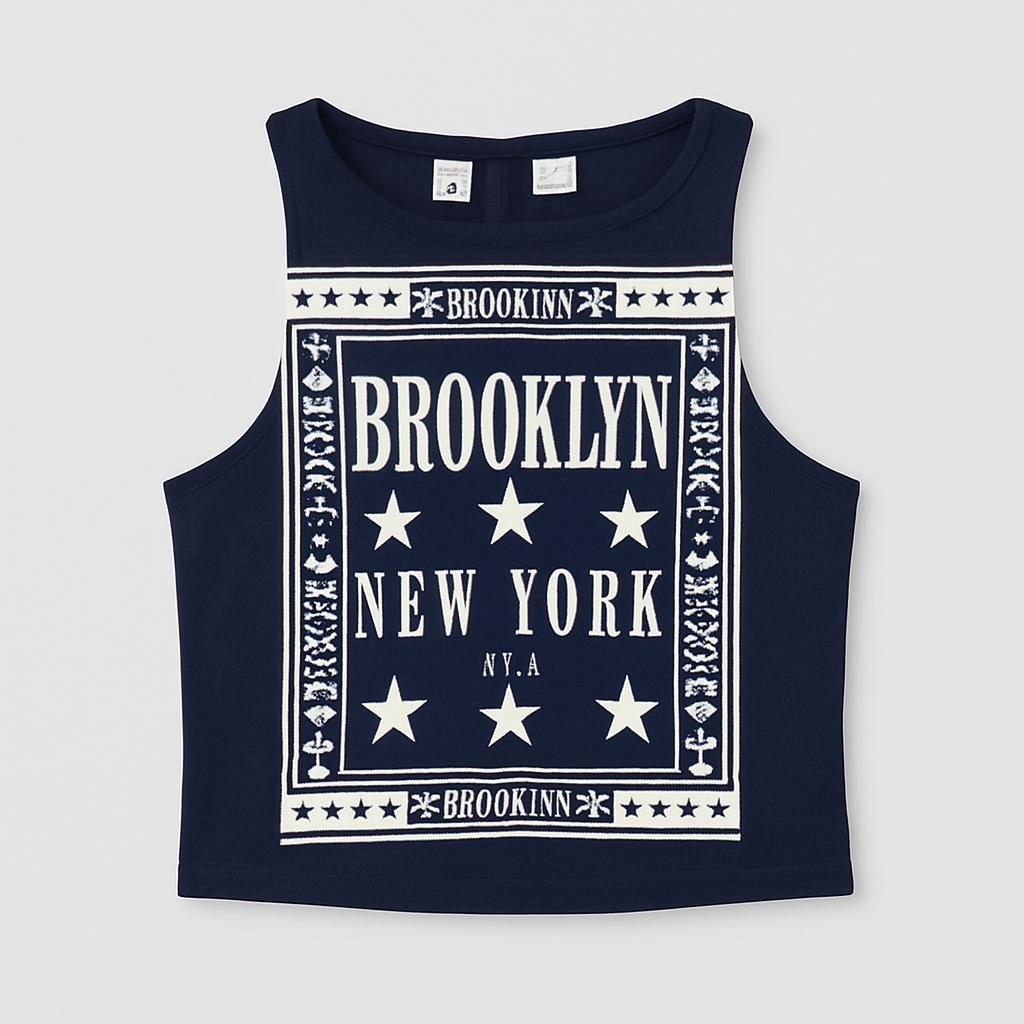 Questo adorabile top smanicato, con un design ispirato a Brooklyn, è perfetto per i piccoli amanti della moda urbana! Realizzato in un tessuto leggero e traspirante, è ideale per le calde giornate estive. Il colore navy intenso è impreziosito da grafiche bianche che conferiscono un tocco di stile metropolitano. Con un taglio moderno e sportivo, questo capo si abbina facilmente a shorts o gonne, rendendo ogni look casual e trendy. Nonostante sia usato, si presenta in ottime condizioni, pronto ad accompagnare ogni avventura con comfort e carattere!