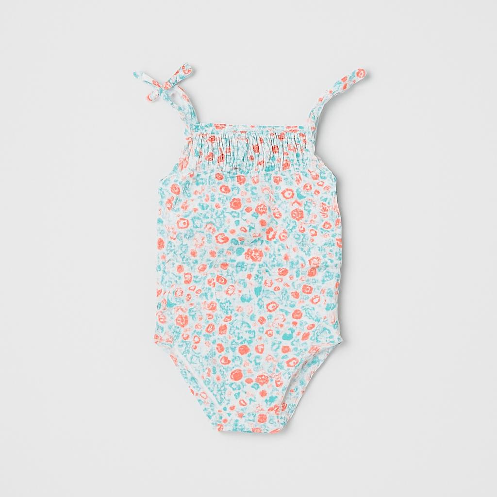 Questo incantevole costume da bagno per bambine è perfetto per le calde giornate estive! Caratterizzato da un delicato motivo floreale in toni di azzurro e rosa, porta un tocco di freschezza e allegria. Le spalline regolabili garantiscono una vestibilità comoda, mentre la parte superiore arricciata aggiunge un lieve tocco di eleganza. Ideale per giornate in piscina o al mare, questo costume, pur essendo usato, si presenta in ottime condizioni. Preparati a far splendere la tua piccola nelle sue avventure acquatiche!