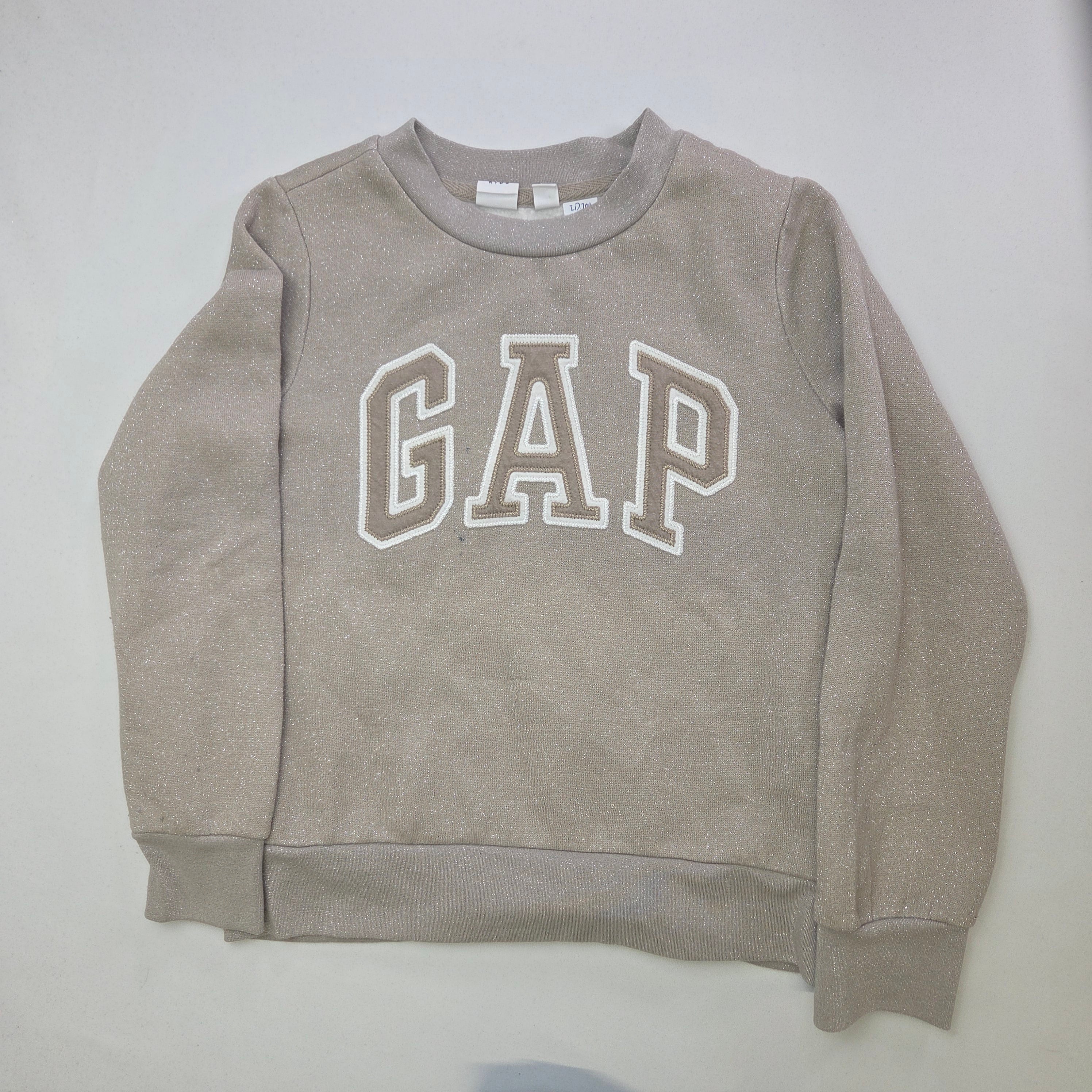 Questa adorabile felpa di marca GAP è perfetta per le giornate fresche! Realizzata in un morbido tessuto, presenta un elegante colore beige con una leggera trama scintillante. Sul davanti, il logo “GAP” in lettere spesse bianche dona un tocco di stile e vivacità. Le maniche lunghe e il taglio classico assicurano comfort e libertà nei movimenti, rendendola ottima per giocare o per una passeggiata al parco. Anche se è un capo usato, si trova in ottime condizioni, pronta per accompagnare la tua piccola nelle sue avventure quotidiane! Un elemento indispensabile per il guardaroba delle piccole fashioniste!
