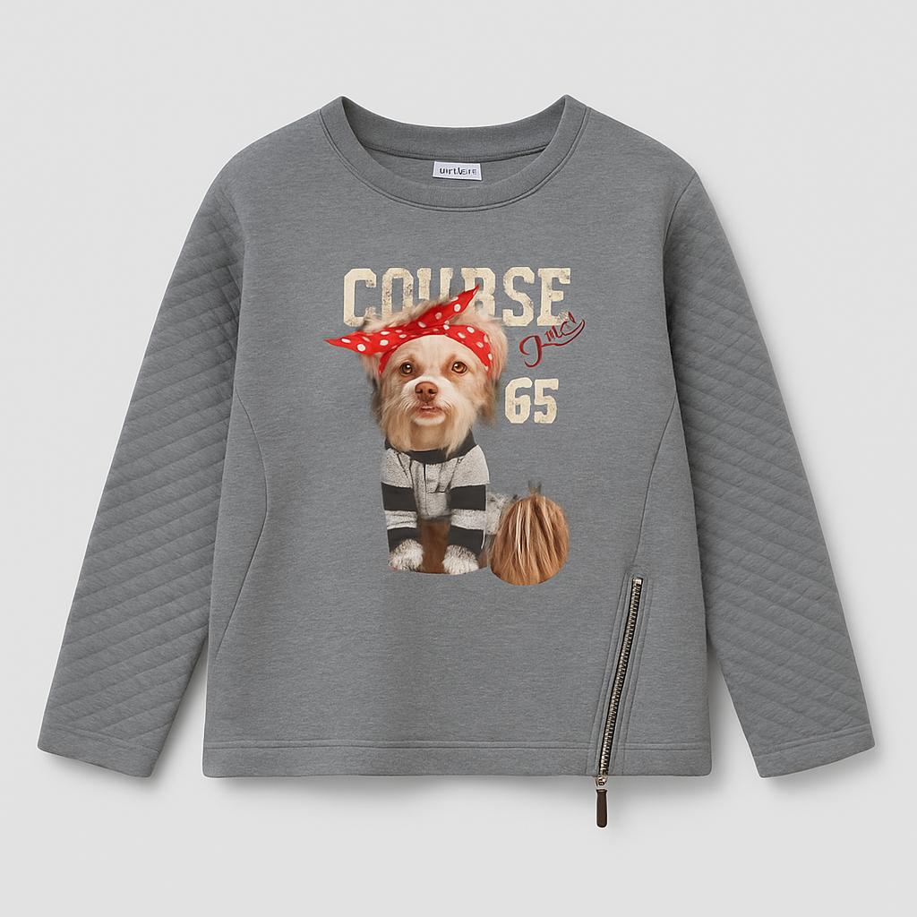 Questo adorabile pull grigio è perfetto per le giornate fresche! Realizzato in morbido tessuto, offre comfort e calore. Sul davanti spicca un tenero ricamo di un cagnolino vestito a festa, che regala un sorriso immediato. Con un taglio trendy e una zip laterale decorativa, questo capo unisce praticità e stile. Perfetto per le piccole amanti degli animali, è un'ottima scelta per outfit casual e divertenti. Anche se usato, è in ottime condizioni e pronto a regalare un tocco di allegria al guardaroba dei vostri bambini!