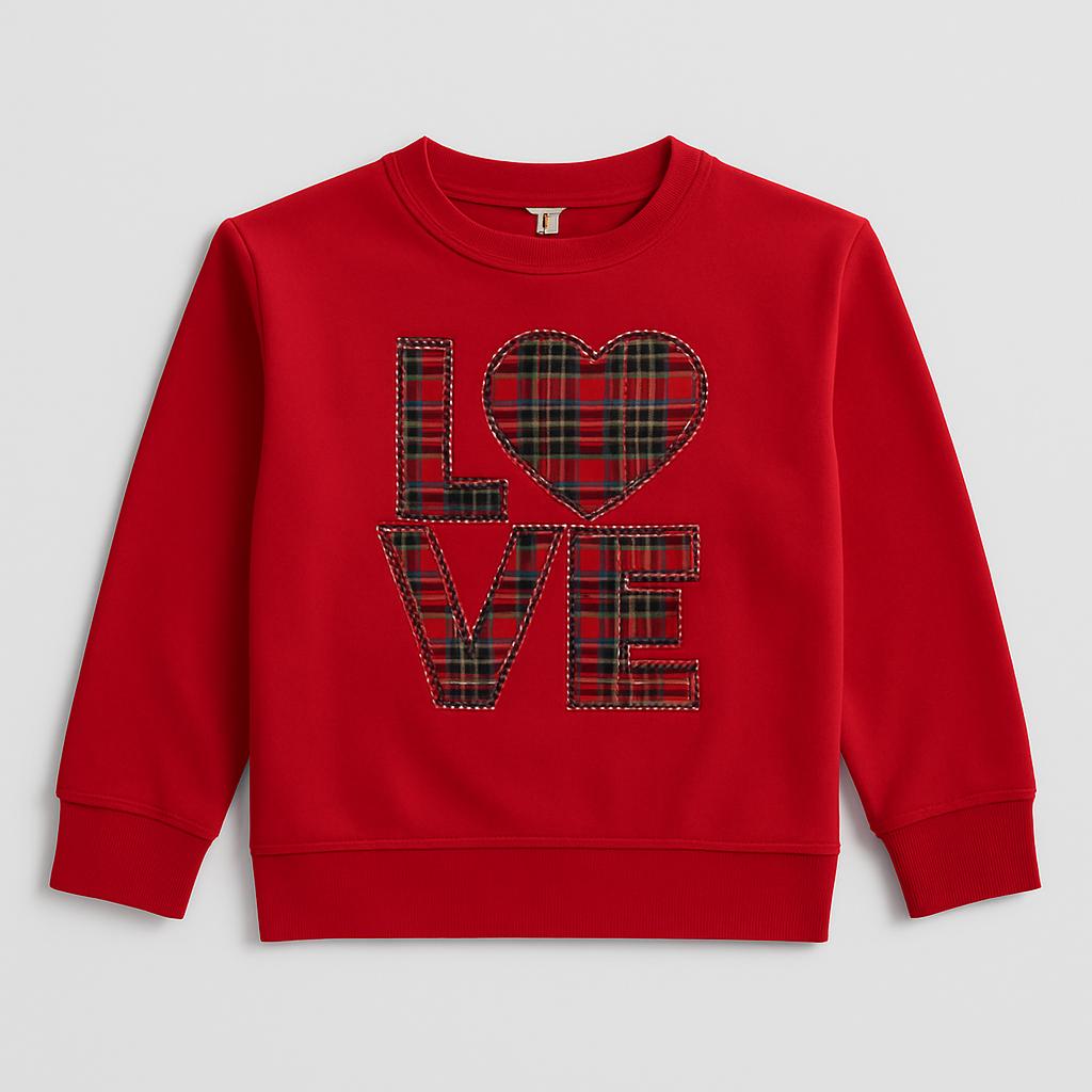 Questa adorabile maglietta rossa a maniche lunghe è perfetta per le piccole esploratrici! Con la scritta "LOVE" in un divertente motivo scozzese, porta un tocco di allegria nel guardaroba. Realizzata in morbido cotone, offre comfort in ogni attività, dalle avventure all'aperto ai pomeriggi sul divano. È un capo usato, ma in ottime condizioni—pronto a fare breccia nel cuore della tua piccola! Un passe-partout che combina stile e calore per ogni occasione!