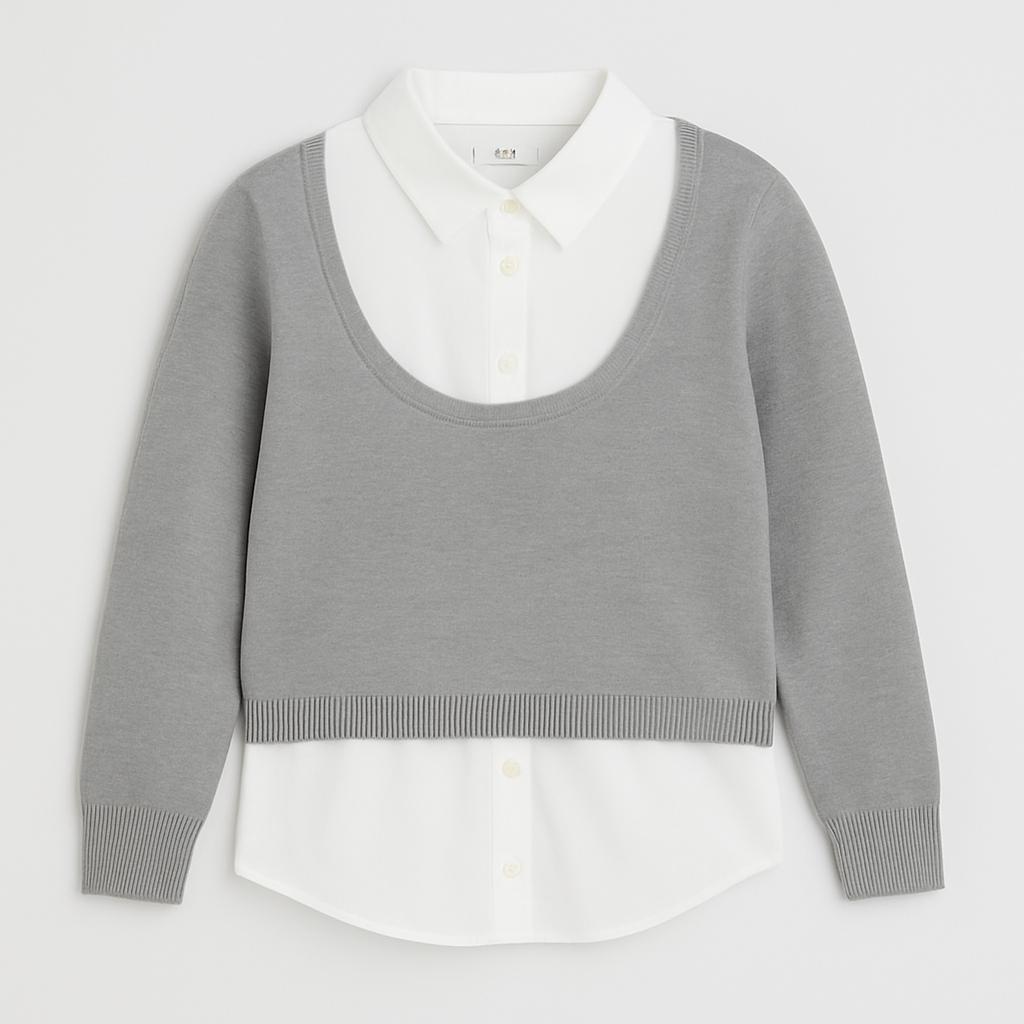 Questo adorabile set è perfetto per le piccole mode e i loro look a strati! Composto da un caldo maglione grigio a maniche lunghe, con un taglio trendy e scollatura a V, e una raffinata camicia bianca sotto, è ideale per ogni occasione. Il maglione, in morbido filato, è perfetto per le fresche giornate autunnali, mentre la camicia dona un tocco di eleganza e ricercatezza. Nonostante sia usato, entrambi i capi sono in ottime condizioni e pronti a far brillare il guardaroba delle piccole fashioniste! Il mix di stili rende questo set un must-have per ogni piccola avventuriera!