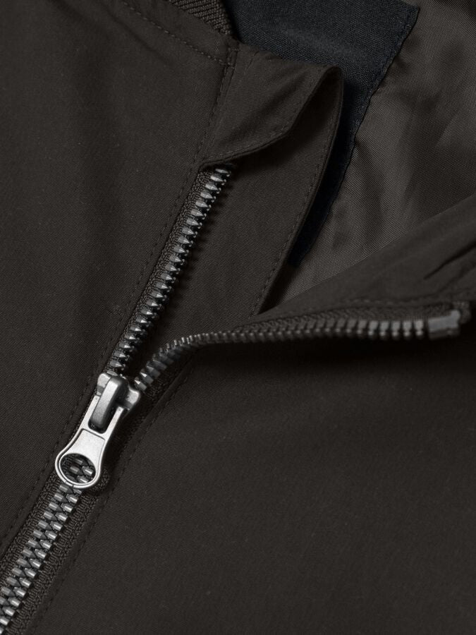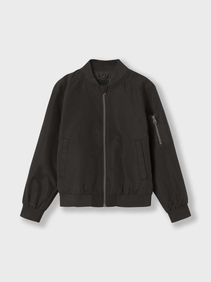 - Product Type : Bomber jacket - Neck : Spread collar - Sleeve : Long sleeves - Cuffs : Ribbed cuffs - Closing : Zip fastening - Pockets : Front pockets - Pockets : Sleeve pocket with zip fastening - Extra details : Rib hem - Extra details : Zip guard to prevent the zip from taking hold of the skin