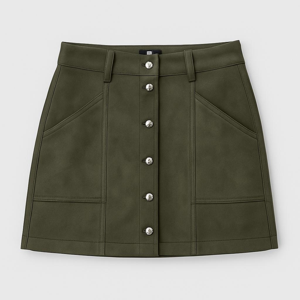 Questa deliziosa gonna di un elegante verde oliva è il pezzo perfetto per le piccole amanti della moda! Realizzata in un morbido materiale simile alla pelle, è arricchita da pratiche tasche e una serie di bottoni frontali che aggiungono un tocco trendy. Il design corto e il taglio sfiancato la rendono ideale per ogni occasione, dal gioco nel parco a una festa con gli amici. Nonostante sia un capo usato, è in ottime condizioni e pronta a regalare stile e comfort alla tua piccola! Un must-have per un guardaroba vivace e ricco di personalità!