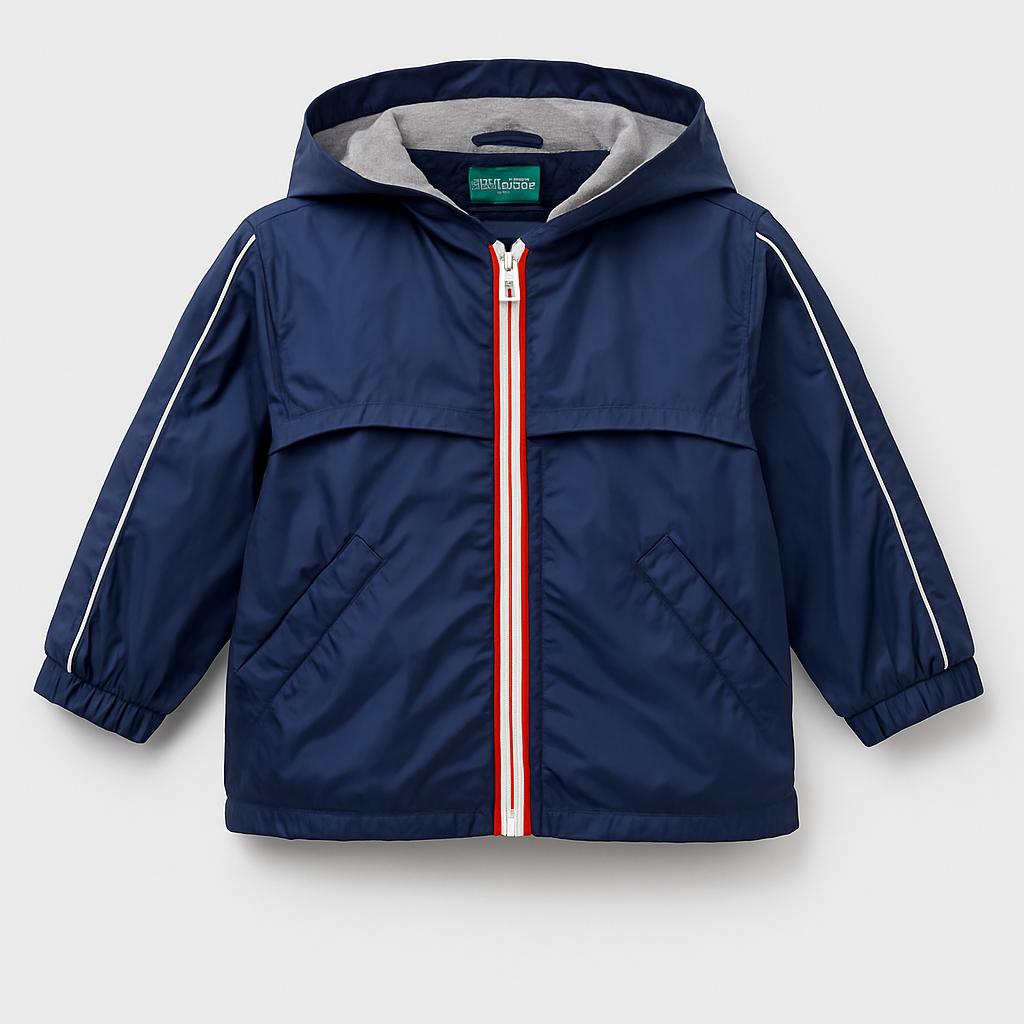 Questo affascinante giubbotto blu scuro è perfetto per ogni piccolo avventuriero! Realizzato in un materiale leggero e resistente, presenta una pratica zip frontale e un esclusivo colletto con cappuccio per una protezione extra. I dettagli in grigio e rosso sui lati aggiungono un tocco di stile e vivacità. Le tasche laterali sono ideali per riporre piccoli tesori durante le esplorazioni. Nonostante sia un capo usato, è in ottime condizioni e pronto a rendere ogni giornata all'aperto piena di comfort e divertimento! Perfetto per le giornate di pioggia o le fresche serate estive, un must-have per l'armadio di ogni bambino!