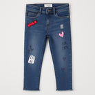 Questi jeans skinny per bambina sono un vero sfizio di stile! Realizzati in denim morbido e confortevole, presentano un fresco lavaggio blu che si abbina a qualsiasi outfit. Decorati con adorabili patch colorati e glitterati, come cuori e messaggi affettuosi, aggiungono un tocco di allegria e originalità. Il taglio moderno e la vestibilità slim garantiscono comodità per le giornate di gioco e avventure. Nonostante siano usati, sono in ottime condizioni e pronti a diventare il pezzo forte del guardaroba della tua piccola fashionista!