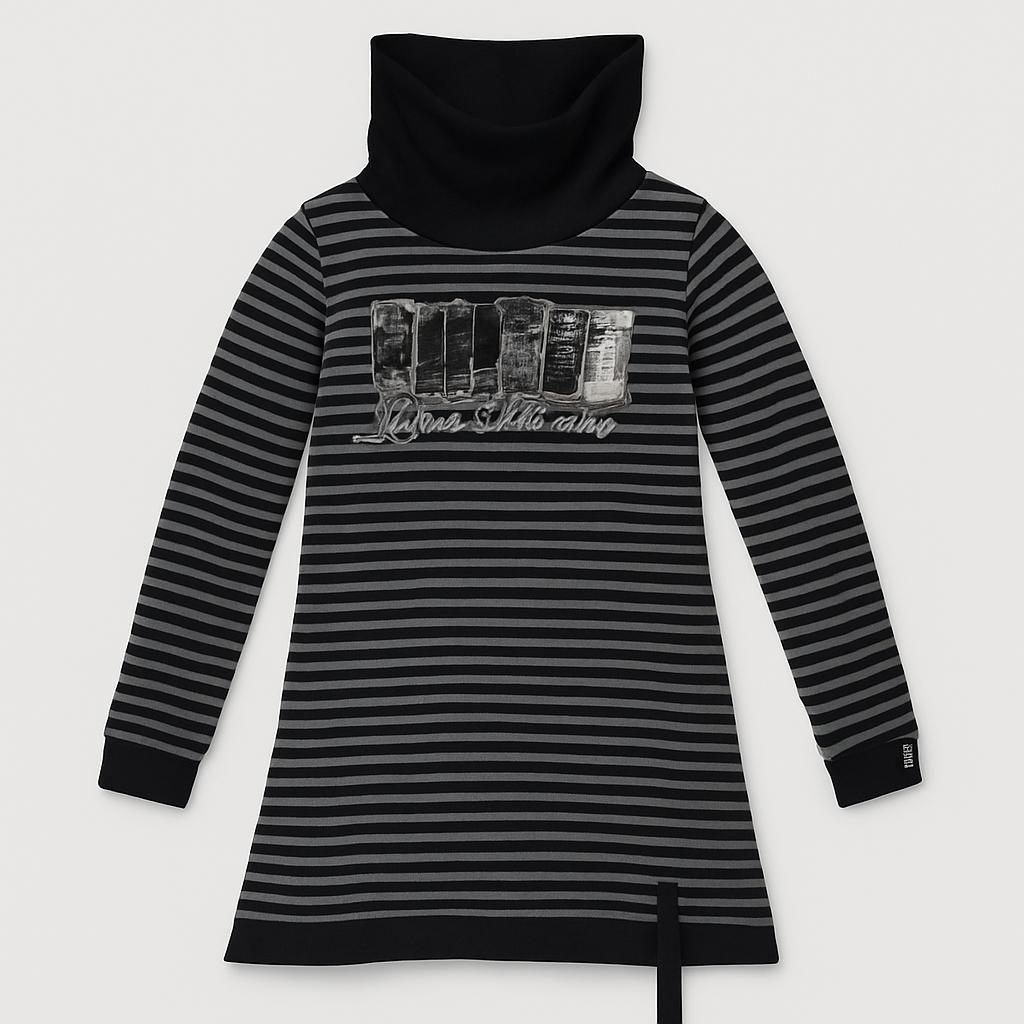 Questo adorabile abito a righe bianche e nere è l'ideale per le piccole che amano stare alla moda! Caratterizzato da un comodo colletto a cappuccio, aggiunge un tocco di originalità. Sul davanti, un divertente design con simpatici animaletti cattura l'attenzione, rendendolo perfetto per le giornate di gioco. Le righe eleganti e il taglio lungo assicurano un look trendy e confortevole. Nonostante sia usato, si presenta in ottime condizioni, pronto per accompagnare le avventure quotidiane della tua piccola!