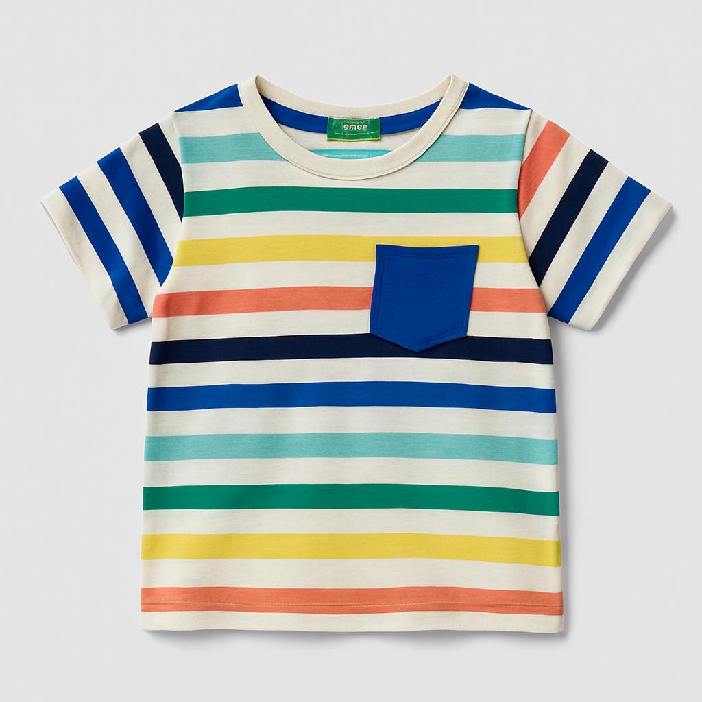 Questo adorabile t-shirt a righe è perfetta per i piccoli esploratori! Realizzata in morbido cotone, presenta un vivace gioco di colori con strisce che spaziano dal blu al giallo, dal verde all’arancione. La comoda tasca frontale in un blu intenso aggiunge un tocco di originalità e funzionalità. Le maniche corte e il taglio leggero la rendono ideale per le giornate spensierate e i giochi all'aperto. Nonostante sia un capo usato, è in ottime condizioni e pronto a far brillare il guardaroba del tuo bambino con un look casual e trendy!