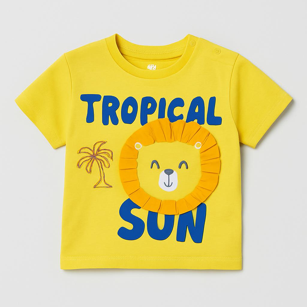 Questa allegra t-shirt gialla è perfetta per far sorridere anche le giornate più nuvolose! Con una dolce stampa di un leone sorridente e la scritta "Tropical Sun", sprigiona l'energia dell'estate. Realizzata in cotone morbido, è comoda e leggera, ideale per essere indossata durante le avventure all'aperto. I dettagli colorati rendono questo capo un ottimo alleato per un look giocoso e divertente, perfetto per i piccoli esploratori. Nonostante sia un capo usato, si presenta in ottime condizioni, pronto a colorare il guardaroba della tua bimba!