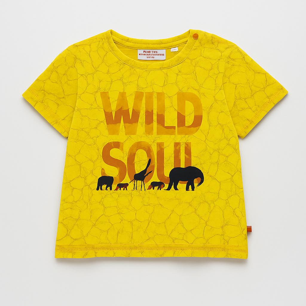 Fai esplodere l'avventura nel guardaroba del tuo bambino con questa t-shirt originale! In un vivace giallo, il capo è adornato da una grafica audace che celebra la "WILD SOUL" con silhouette di animali che si stagliano in modo accattivante. Realizzata in un tessuto morbido e leggero, è perfetta per le giornate all’aria aperta, giochi nel parco o semplicemente per un look colorato e giovanile. Nonostante sia un pezzo usato, si presenta in ottime condizioni, pronto a dare vita a storie di esplorazioni all'insegna dello stile! Un'aggiunta imperdibile per i piccoli esploratori!
