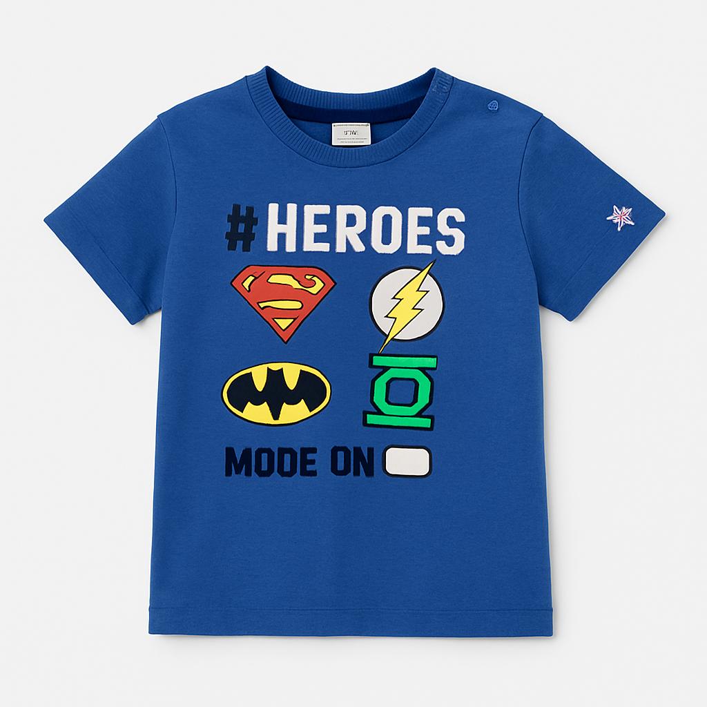 Indossa il potere dei supereroi con questa fantastica t-shirt blu! Realizzata in morbido cotone, presenta un design vivace e accattivante con i simboli iconici di Superman, Batman e Lantern. Le scritte colorate e il pratico bottone sulle spalle la rendono facile da indossare. Perfetta per piccoli eroi in cerca di avventure, questa maglietta offre comfort e stile, ideale per la vendita! Anche se è usata, appare in ottime condizioni, pronta a ravvivare il guardaroba del tuo piccolo supereroe!