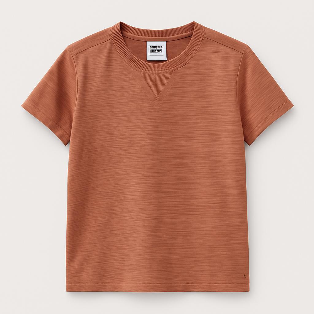 Questa adorabile t-shirt in un caldo tono terracotta è l'ideale per ogni piccola modaista! Realizzata in un comodo tessuto leggero, offre un tocco di semplicità e versatilità. Il design a maniche corte e il taglio leggermente cropped la rendono perfetta per le giornate di avventure estive e per giocare con gli amici. Anche se usata, è in ottime condizioni e pronta a regalare tanto stile e comodità per i look quotidiani. Un capo da non perdere per il guardaroba delle bambine che amano esprimere la loro personalità!