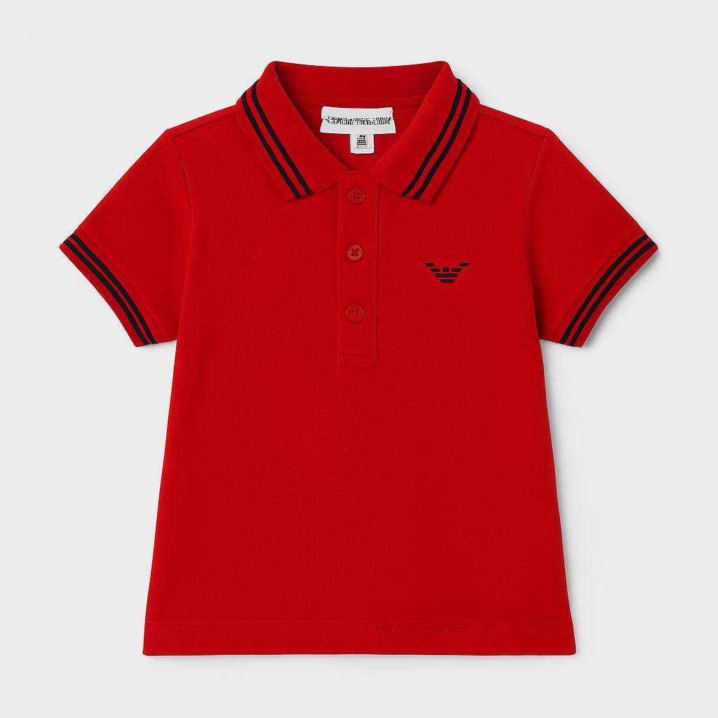 Questa polo rossa di Emporio Armani è un capolavoro di stile e comfort per i piccoli fashionisti! Realizzata in cotone morbido, questa maglietta presenta un classico colletto a polo e righe blu e nere che danno un tocco sportivo. Il logo elegante ricamato sul petto offre un accento di distinzione. Perfetta per occasioni speciali o per un look casual, questa polo è un versatile must-have del guardaroba che farà sentire il tuo bambino sempre impeccabile! Nonostante sia usata, si presenta in ottime condizioni, pronta per nuove avventure.
