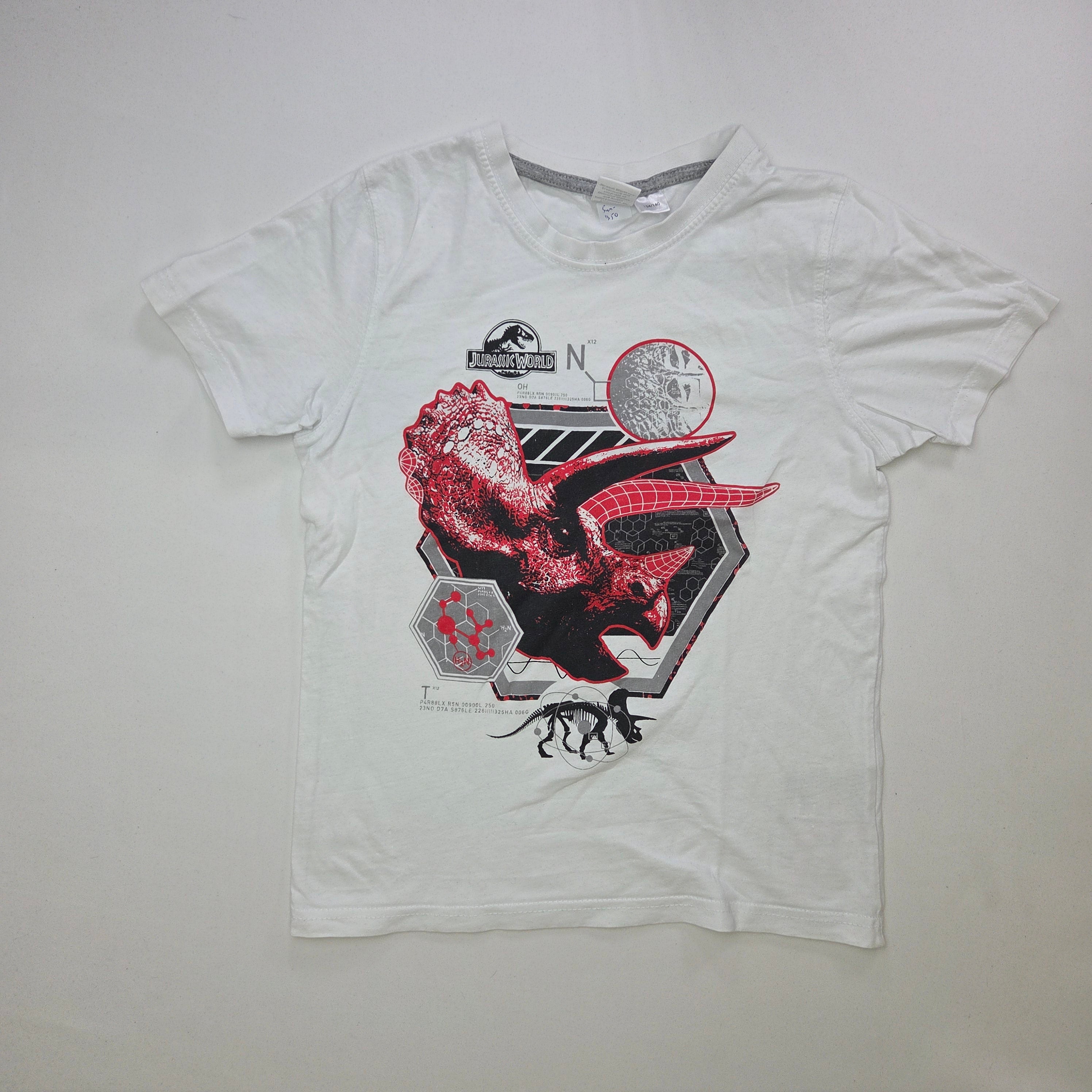 Scopri questa divertente t-shirt bianca a tema Jurassic World, perfetta per i giovani amanti dei dinosauri! Realizzata in morbido cotone, presenta un'illustrazione vivace di un maestoso Triceratopo in un mix di rosso e nero, che farà brillare gli occhi ai piccoli esploratori. Con le sue maniche corte e il taglio comodo, è ideale per avventure nei parchi o per giocare con gli amici. Nonostante sia un capo usato, si presenta in ottime condizioni, pronto per dare vita a nuove avventure! Un capo imperdibile per ogni piccolo fan dei mondi preistorici!