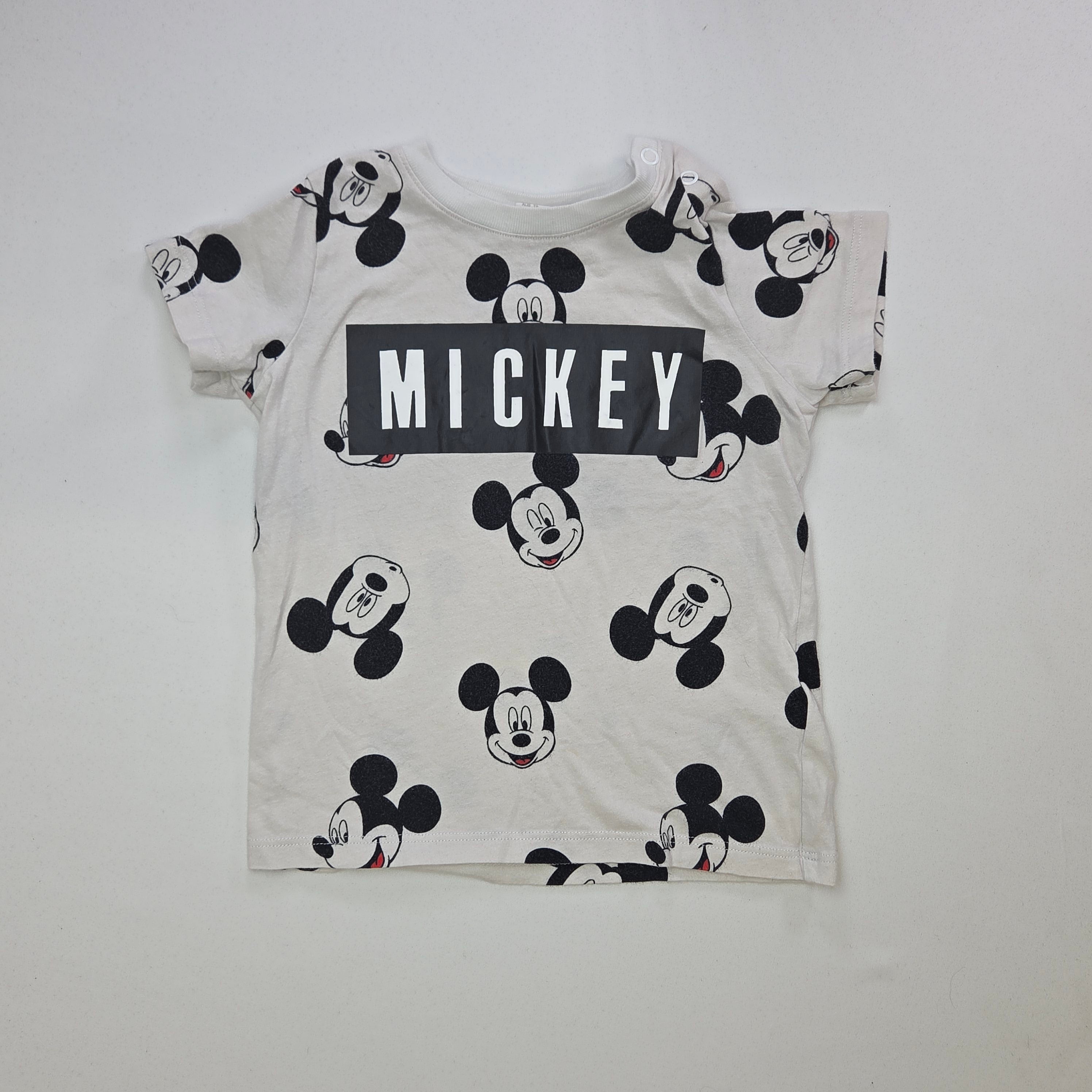 Fai felice il tuo piccolo con questa adorabile t-shirt di Mickey Mouse! Realizzata in morbido cotone, la maglietta presenta un allegro motivo con il celebre topo Disney che sorridente riempie il tessuto. Il logo "MICKEY" in caratteri bold sul fronte aggiunge un tocco di originalità e stile da vera star. Le aperture con bottoni sulle spalle facilitano il cambio, mentre il taglio comodo è perfetto per giocare o divertirsi all'aperto. Anche se è un capo usato, è in ottime condizioni e pronto a regalare gioia e avventure! Un must-have per tutti i piccoli fan di Mickey!