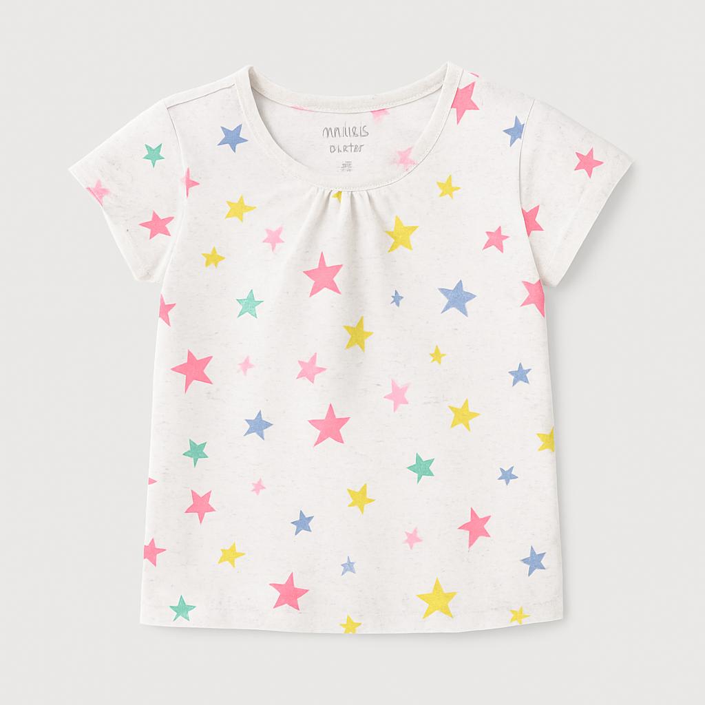 Questa adorabile t-shirt è perfetta per le piccole sognatrici! Realizzata in morbido cotone, presenta un fresco sfondo bianco punteggiato da stelle colorate in tonalità vivaci come il rosa, il giallo e il verde. Il taglio leggermente svasato e le maniche corte offrono comfort e libertà di movimento, ideali per giochi e avventure estive. Nonostante sia un capo usato, è in ottime condizioni e pronta a portare un tocco di magia nel guardaroba della tua bambina. La t-shirt ideale per brillare in ogni occasione!