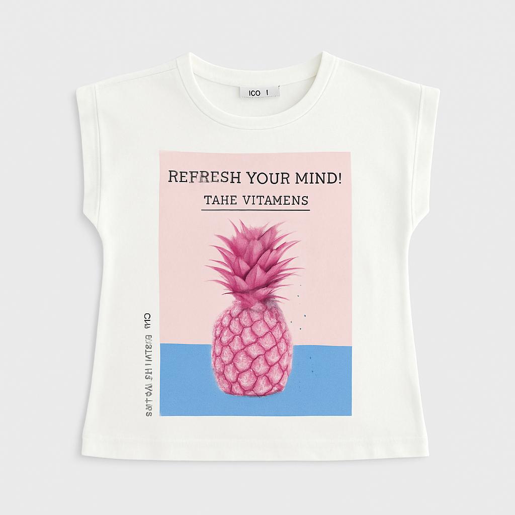 Questa adorabile T-shirt bianca è perfetta per le calde giornate estive! Con una stampa colorata di un'ananas e il messaggio "Refresh Your Mind! Take Vitamins", porta un'aria fresca e frizzante nel guardaroba dei più piccoli. Realizzata in morbido cotone, offre comfort e libertà di movimento. Le maniche corte e il taglio ampio la rendono ideale per le avventure all'aperto, giochi al parco o semplicemente per un look casual e trendy. Anche se è un capo usato, si presenta in ottime condizioni, pronta per accompagnare i bambini in ogni divertente esplorazione! Un must-have per i piccoli esploratori!