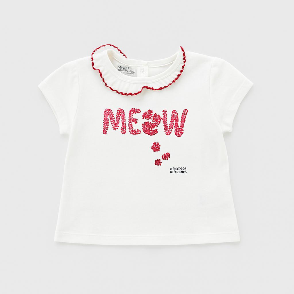 Questa adorabile t-shirt bianca è un vero gioiellino per le piccole amanti dei gatti! Decorata con una scritta "MEOW" in vivaci glitter rossi, porta un tocco di divertimento e allegria. Il colletto arricciato aggiunge un dettaglio chic e femminile, mentre la morbida scelta di cotone garantisce comfort per tutto il giorno. Perfetta per ogni occasione, da giochi nel parco a pomeriggi di svago con gli amici. Anche se usata, si presenta in ottime condizioni, pronta a rendere felice la tua piccola. Un capo irresistibile da aggiungere al guardaroba!