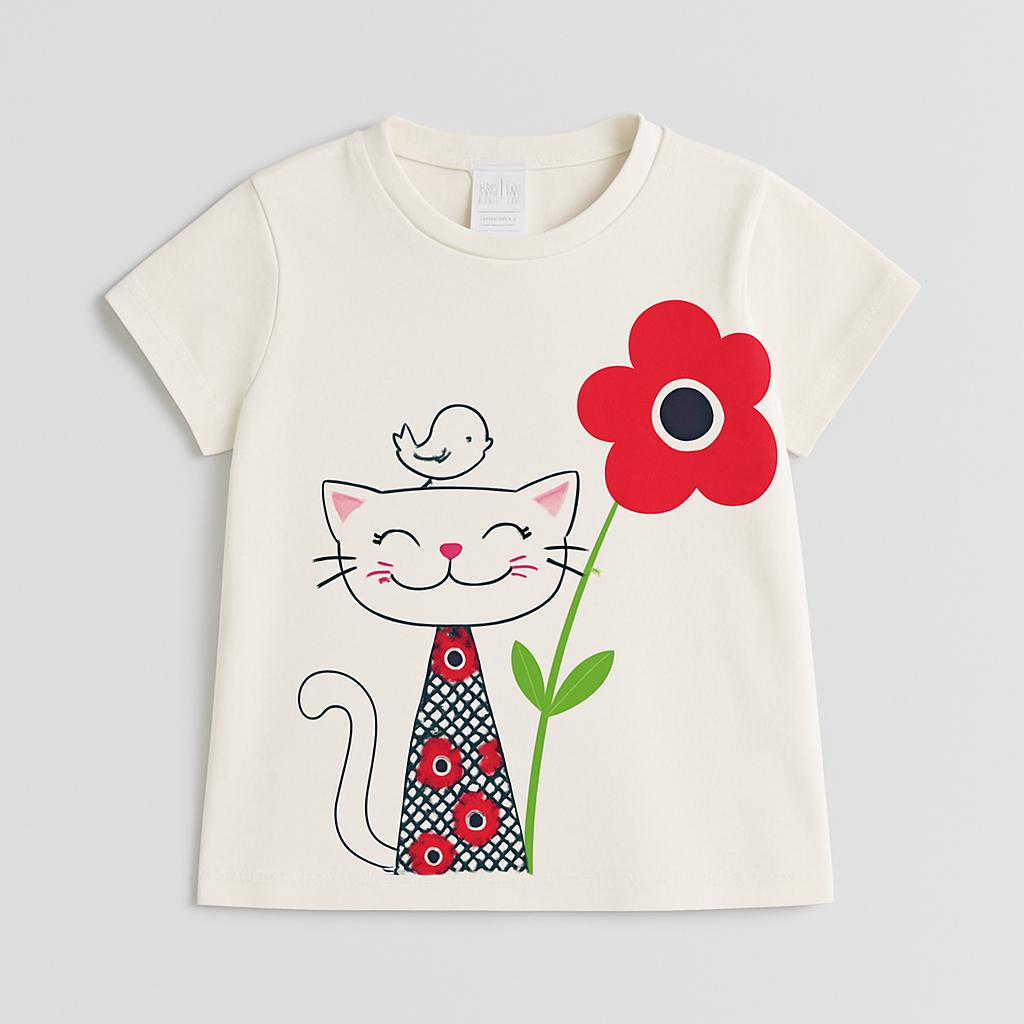 Deliziosa t-shirt bianca con un adorabile granchio di design, perfetta per le piccole amanti degli animali! Composta in morbido cotone, questa maglietta presenta un dolce motivo di un gatto sorridente con un uccellino sulla testa e un colorato fiore rosso. Le maniche corte e il taglio leggermente svasato la rendono comoda e fresca, ideale per le giornate spensierate di gioco. Nonostante sia un capo usato, si trova in ottime condizioni, pronta a colorare le avventure quotidiane della tua bimba! Un tocco di allegria per ogni outfit!