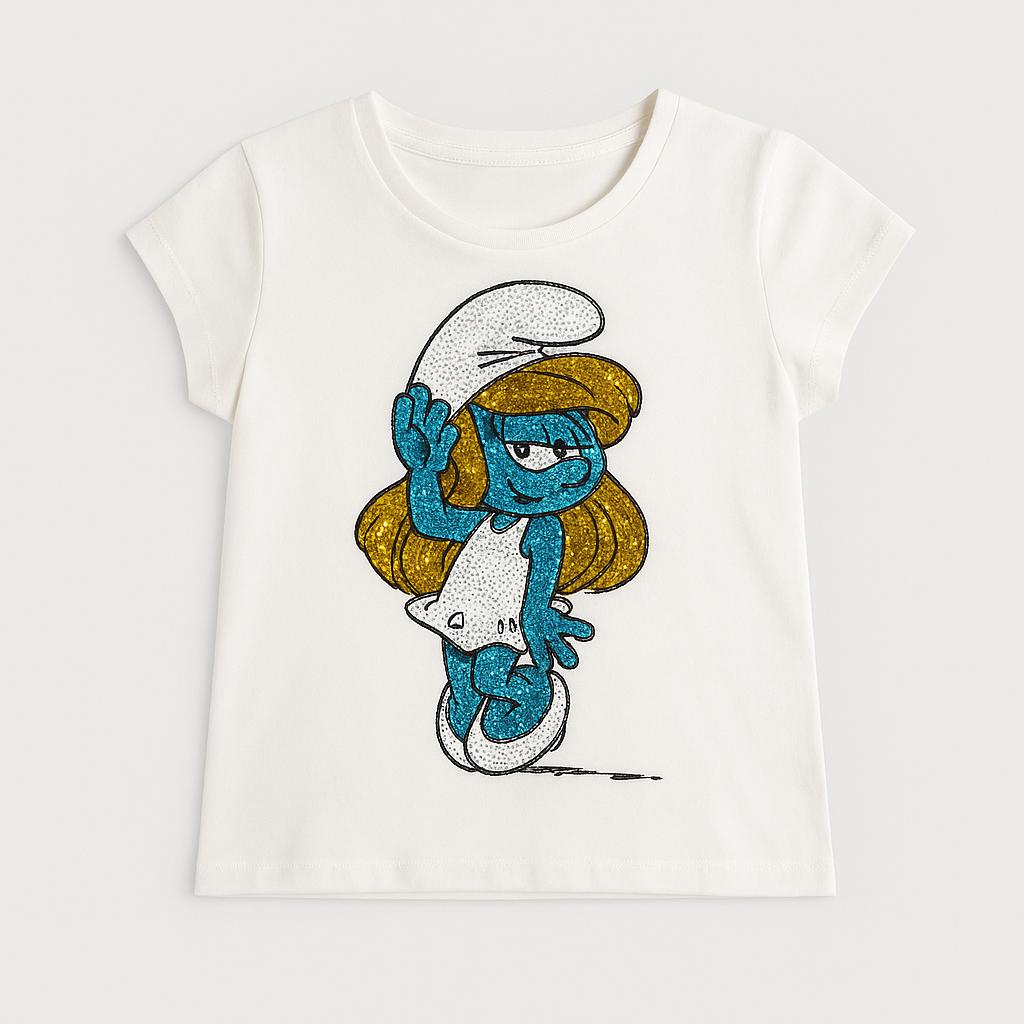Fai brillare il guardaroba della tua piccola con questa adorabile t-shirt bianca a tema Puffi! Realizzata in morbido cotone, presenta un vivace design con Puffetta, decorata con paillettes luccicanti che catturano la luce ad ogni movimento. Le maniche corte e il taglio rilassato rendono questo capo perfetto per le giornate di gioco o per un look casual e trendy. Nonostante sia un capo usato, si trova in ottime condizioni, pronto per accompagnare ogni avventura. Un must-have per ogni piccola amante dei Puffi!