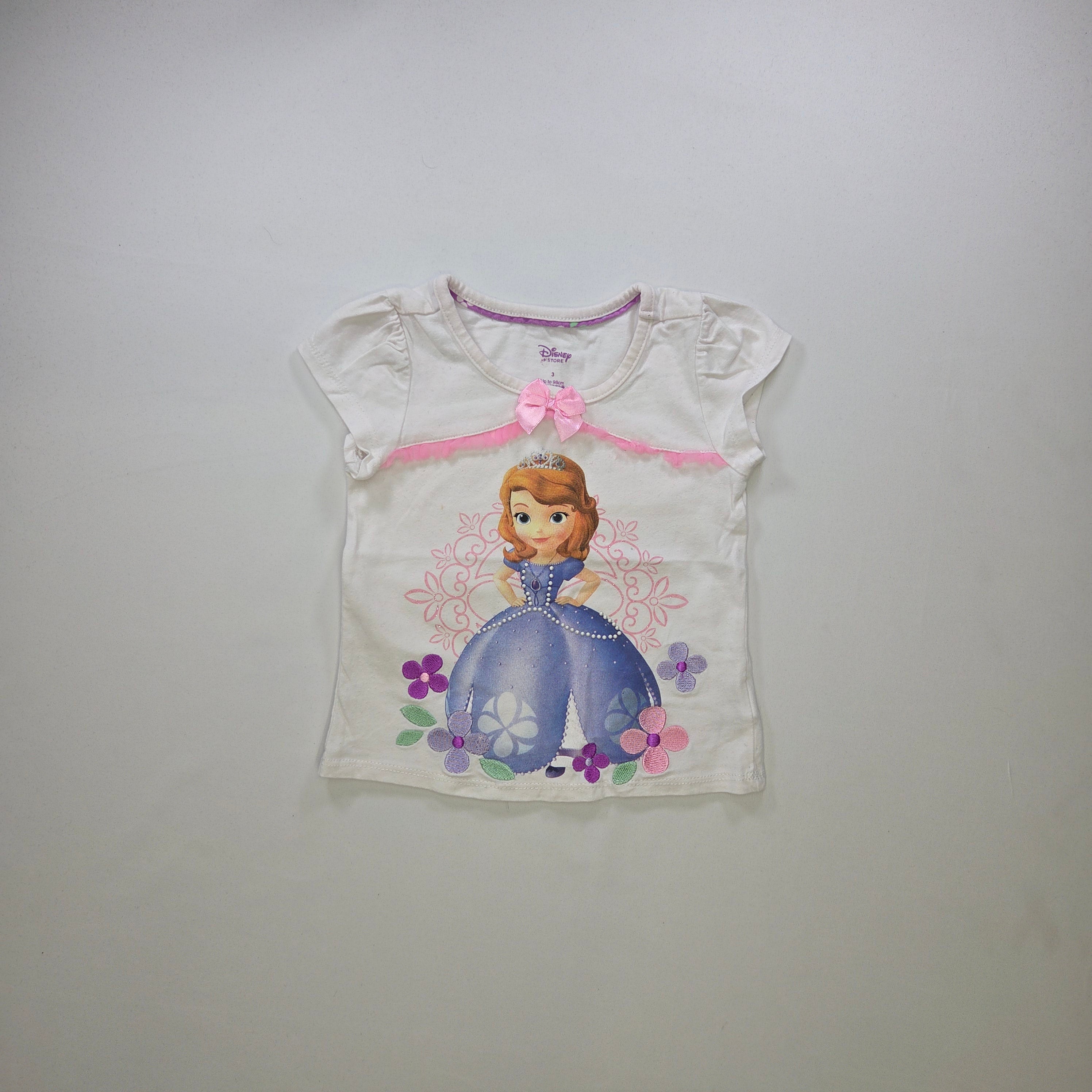 Questa adorabile t-shirt della Disney conquisterà il cuore di ogni piccola fan di Sofia la Principessa! Realizzata in morbido cotone, la maglietta è di un delicato colore bianco, arricchita da un'incantevole stampa della dolce Sofia, circondata da fiori colorati. La petite cintura rosa e il fiocchetto sul davanti aggiungono un tocco di grazia e femminilità. Con maniche a palloncino e un taglio comodo, è perfetta per le avventure quotidiane, per giocare e divertirsi in modo fashion. Anche se usata, si presenta in ottime condizioni, pronta a far brillare il guardaroba della tua piccola principessa!