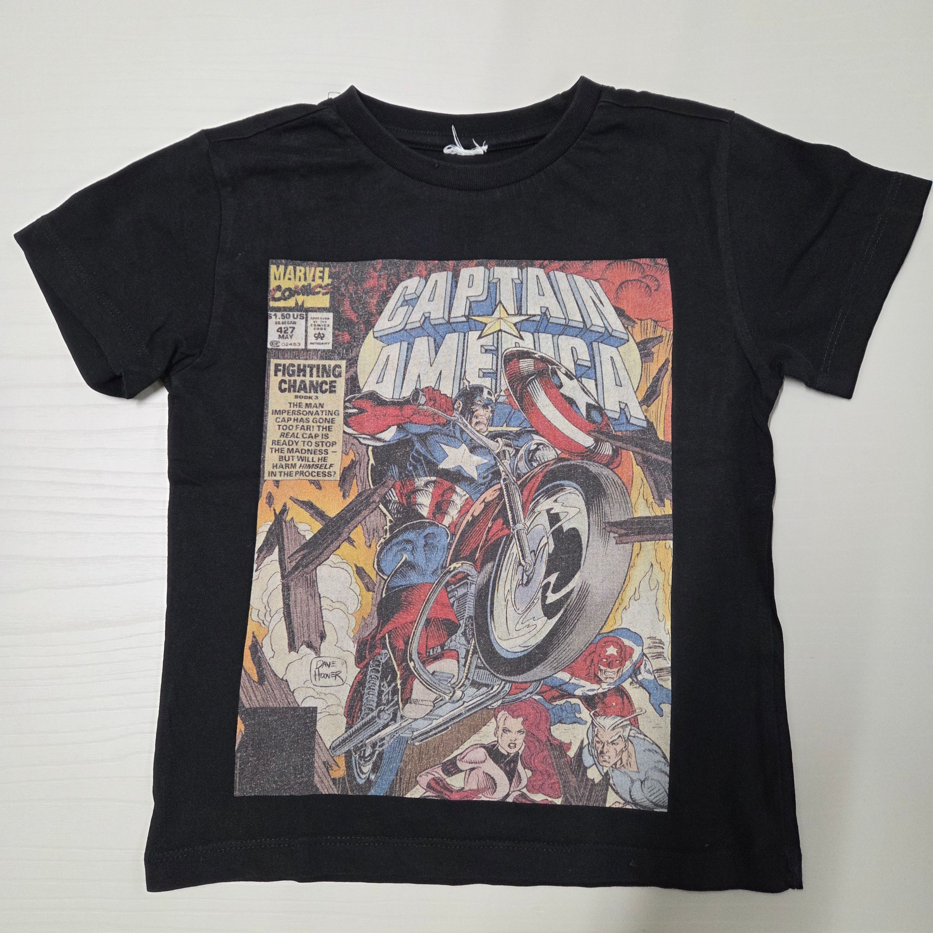 Questo fantastico t-shirt di Captain America dal mondo Marvel è un vero must per i piccoli supereroi! Realizzato in morbido cotone, il capo presenta una vivace stampa del famoso eroe con colori accattivanti che trasmettono energia e avventura. Il taglio comodo e le maniche corte lo rendono perfetto per le giornate di gioco o per una pausa film con gli amici. Sebbene sia usato, si presenta in buone condizioni e pronto a regalare emozioni e divertimento. Ottimo per i piccoli fans dei fumetti!