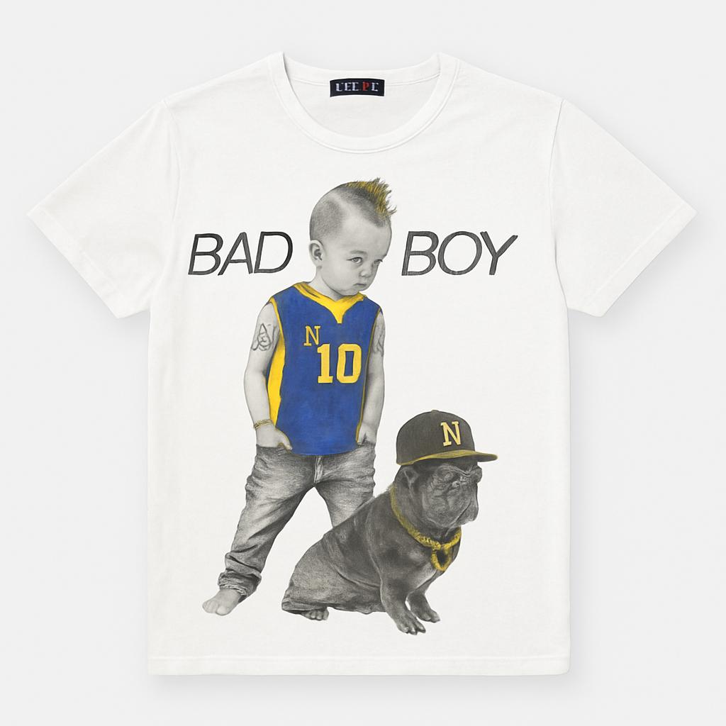 Fai brillare il guardaroba del tuo bimbo con questa divertente t-shirt "Bad Boy"! Realizzata in morbido cotone bianco, presenta una simpatica stampa che ritrae un piccolo "bad boy" in maglia blu con il numero 10 e il suo fedele amico a quattro zampe. Il design giovanile e audace la rende perfetta per i piccoli amanti dello stile e dell’avventura. Con maniche corte e taglio comodo, è ideale per le giornate di gioco al parco o semplicemente per rilassarsi a casa. Nonostante sia usata, si presenta in ottime condizioni, pronta per accompagnare i tuoi bambini in ogni loro avventura!