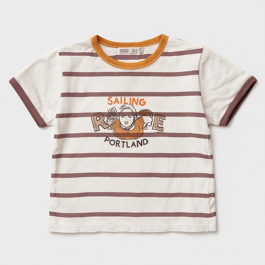 Questa adorabile t-shirt a righe bianche, viola e arancioni è un vero tesoro per il guardaroba dei più piccoli! Con una simpatica grafica centrale “Sailing Portland” e un grande pungiglione, trasmette un'atmosfera di avventure estive. Le righe vivaci e il colletto arancione aggiungono un tocco di allegria, mentre il materiale morbido garantisce comfort durante tutte le attività giornaliere. Perfetta per una giornata al parco o per giocare con gli amici, questa maglietta usata è in buone condizioni e pronta a far brillare il look del tuo bambino!