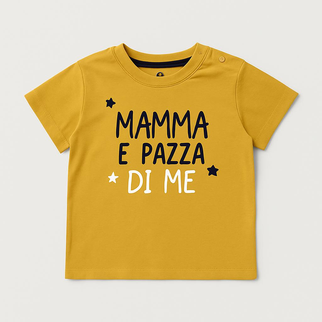Questa simpatica t-shirt gialla è perfetta per il tuo piccolo! Con la scritta "Mamma è pazza di me", trasmette amore e allegria. Realizzata in morbido cotone, offre comfort e libertà di movimento. I dettagli in blu aggiungono un tocco di vivacità, mentre i bottoncini sulla spalla facilitano il cambio. Ideale per ogni occasione, dalla scuola ai giochi all'aperto, è un capo usato ben conservato e pronto a regalare un sorriso! Un must-have per i più piccoli!