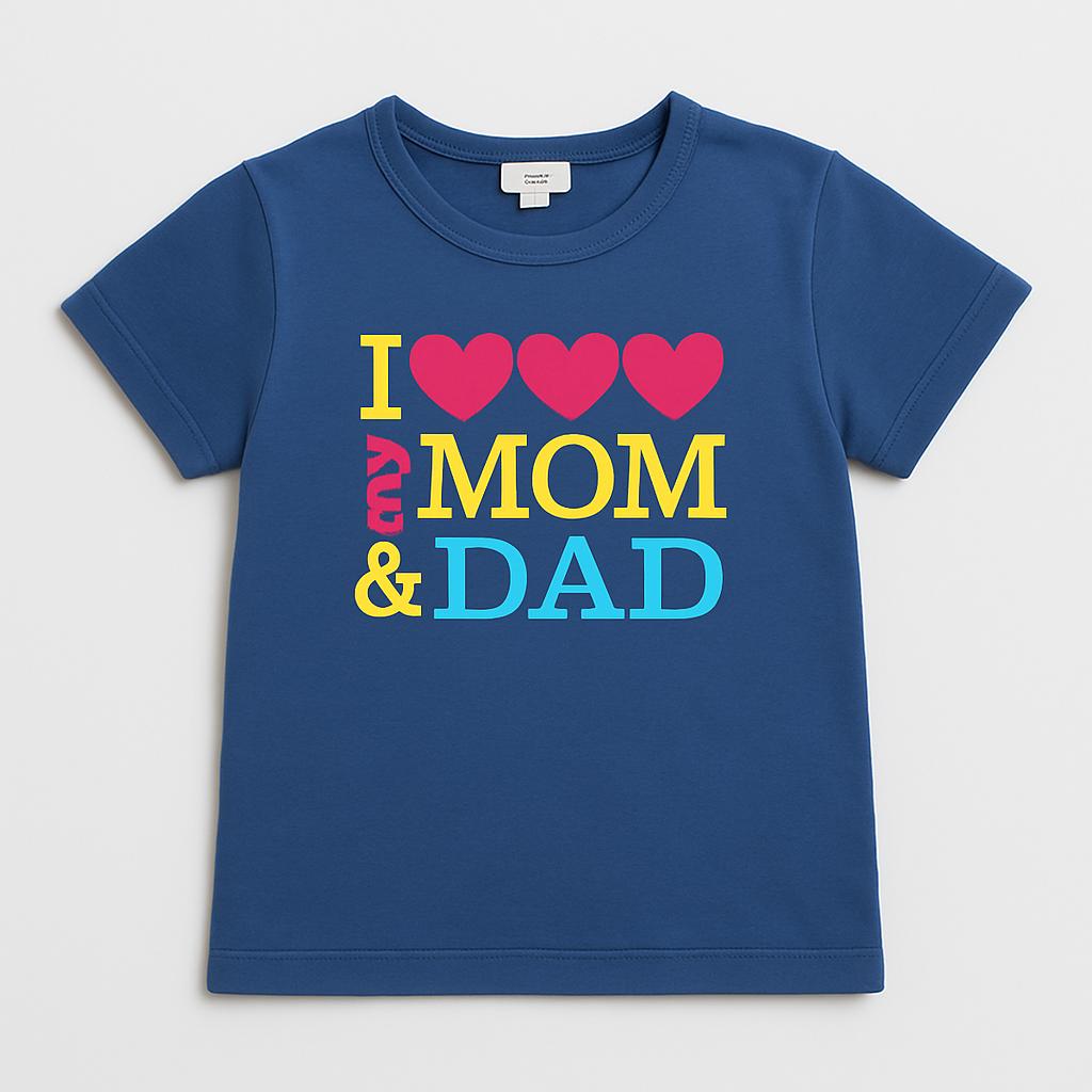 Questa adorabile t-shirt blu è un omaggio affettuoso ai genitori! Realizzata in soffice cotone, è impreziosita da una vivace scritta "I ♥ my MOM & DAD" che mette subito di buon umore, grazie ai colori brillanti che la decorano. Il taglio classico e le maniche corte la rendono perfetta per le giornate di sole e per i giochi all’aperto. Nonostante sia un capo usato, si presenta in ottime condizioni, pronta per essere indossata da un piccolo cuoricino che ama la sua famiglia. Un must-have per i giovanissimi sostenitori dell’amore familiare!