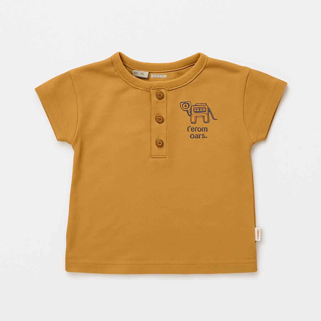 Questa adorabile t-shirt in un caldo tono senape è perfetta per i piccoli esploratori! Realizzata in morbido cotone, presenta un colletto a bottoncini e maniche corte per un look comodo e alla moda. Sul fronte, un'accattivante stampa di un simpatico elefantino regala un tocco di allegria. Anche se usata, si presenta in ottime condizioni, pronta per accompagnare il tuo bambino nelle sue avventure quotidiane. Un capo versatile che si abbina facilmente a qualsiasi outfit!