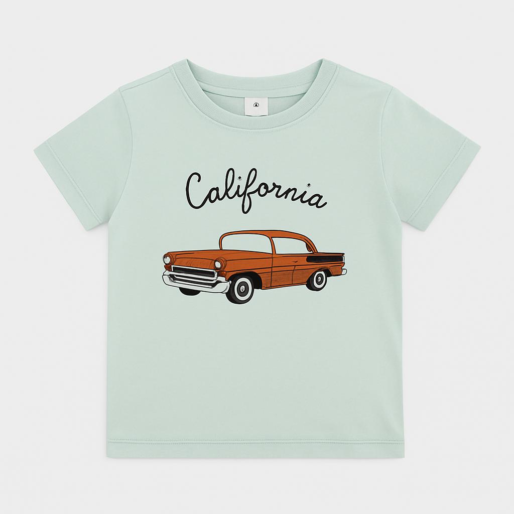 Scopri questa simpatica t-shirt in verde pastello che trasmette un’atmosfera californiana! Con un delizioso motivo che rappresenta una vettura vintage, è perfetta per i piccoli sognatori che amano l'avventura. La scritta “California” in un elegante carattere nero aggiunge un tocco di stile che fa viaggiare la fantasia. Realizzata in morbido cotone, garantisce comfort per ogni gioco e attività. Anche se è un capo usato, si presenta in ottime condizioni e sarà un'aggiunta vivace al guardaroba del tuo bambino, ideale per le giornate estive!