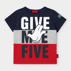 Questa divertente t-shirt di marca OVS è perfetta per i piccoli di casa! Realizzata in morbido cotone, presenta un design dinamico con la scritta "GIVE ME FIVE" su uno sfondo a strisce rosse, blu e grigie. Il grande guanto stilizzato aggiunge un tocco giocoso che farà sorridere tutti. Le maniche corte e il taglio comodo la rendono ideale per le avventure estive o per una giornata di giochi. Nonostante sia usata, è in ottime condizioni e pronta per essere indossata da un mini trendsetter! Un capo che unisce comfort e stile per ogni piccola personalità!