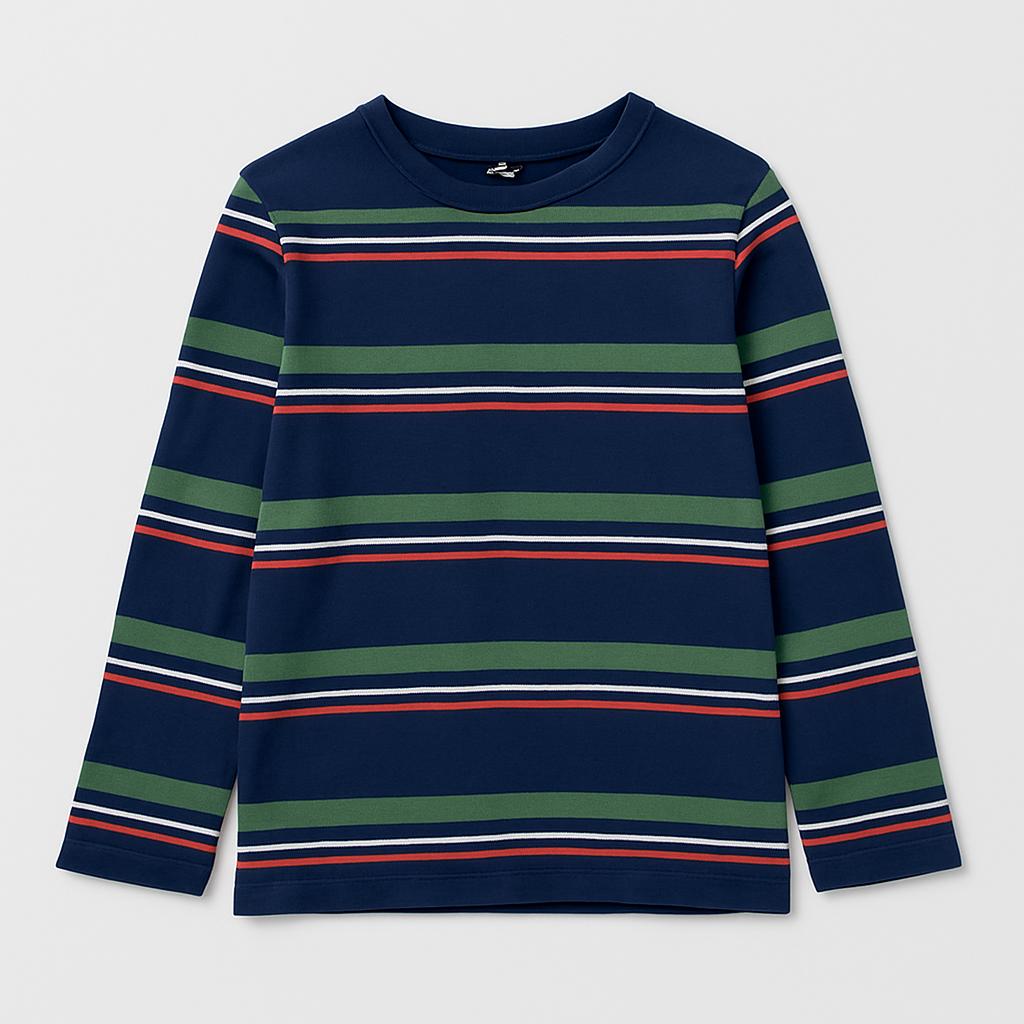 Questa adorabile maglietta a maniche lunghe è perfetta per le avventure quotidiane del tuo bambino! Realizzata in morbido cotone, presenta una vivace fantasia a righe in blu navy, verde e rosso, ideale per un look giocoso e alla moda. Il taglio comodo e le maniche lunghe la rendono perfetta per le giornate più fresche o per un'ottima stratificazione. Nonostante sia un capo usato, si trova in ottime condizioni e porterà un tocco di charme al guardaroba del tuo piccolo. Un must-have per i piccoli esploratori!