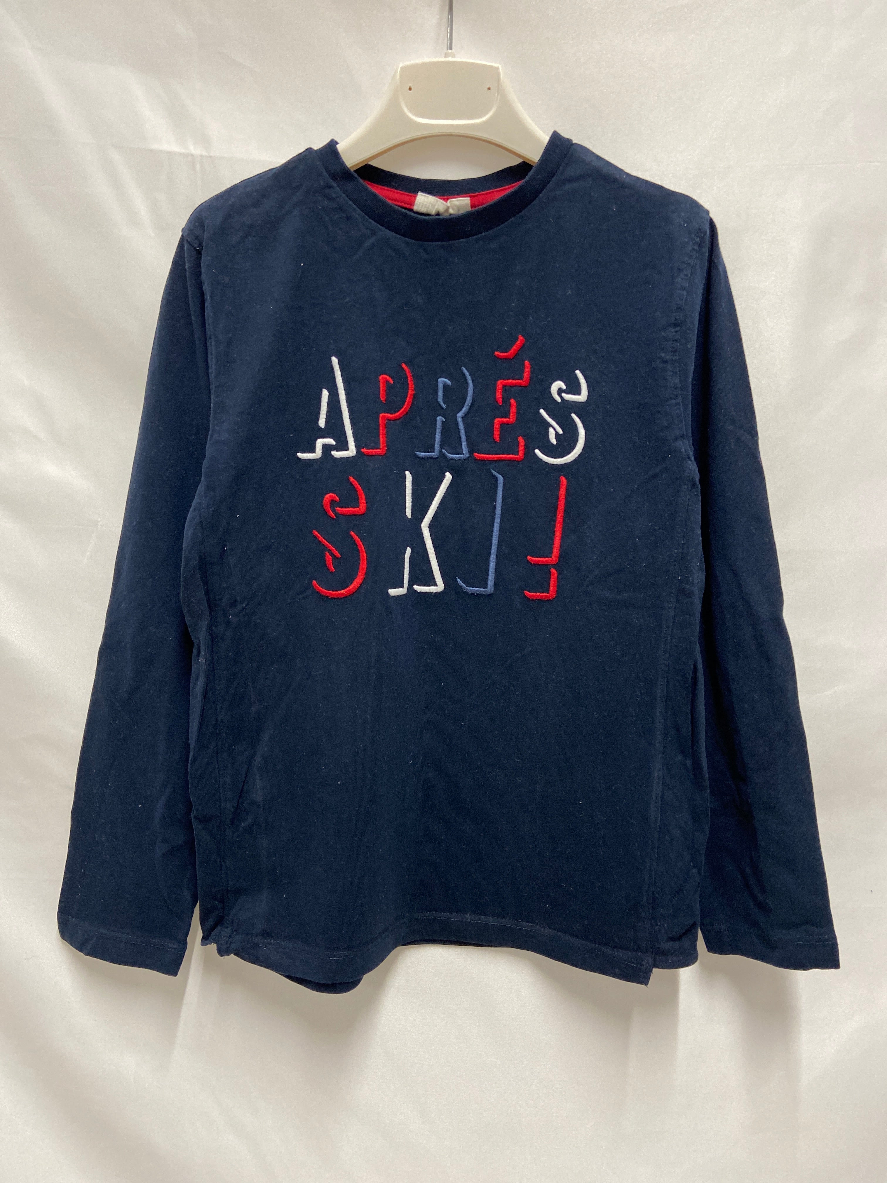 Questa simpatica felpa a maniche lunghe è perfetta per i piccoli amanti della montagna! Realizzata in morbido cotone di un elegante blu navy, presenta un vivace motivo "APRÈS SKI" in una combinazione di colori accattivanti: rosso, bianco e blu. Il design è giocoso e alla moda, rendendola ideale per avventure all'aperto o relax in casa. Nonostante sia un capo usato, si presenta in ottime condizioni e sarà un'aggiunta fantastica al guardaroba invernale dei bambini. Comfort e stile sono assicurati con questa felpa!