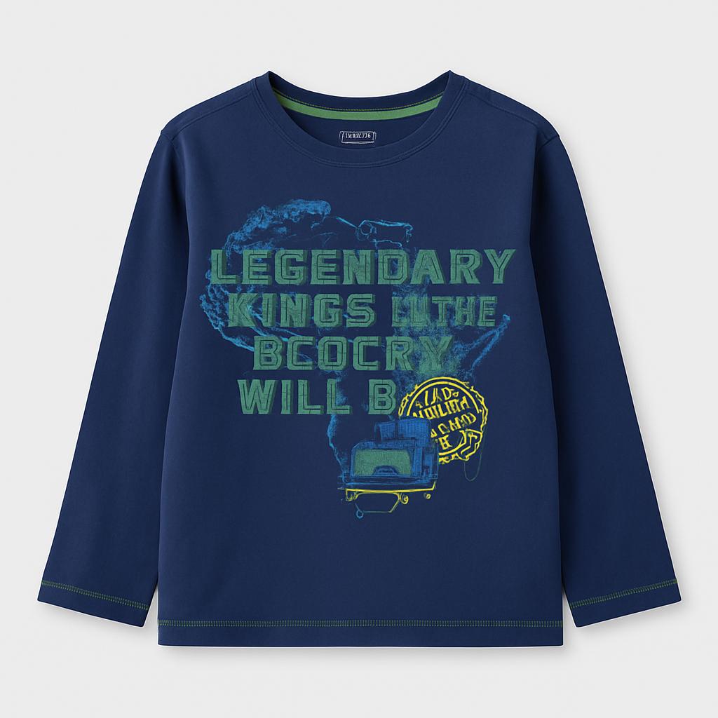 Questo adorabile maglione a maniche lunghe è perfetto per i piccoli esploratori! Realizzato in morbido cotone di un elegante blu navy, presenta una grafica accattivante con la scritta "LEGENDARY" e dettagli colorati che richiamano avventure lontane. Le cuciture a contrasto aggiungono un tocco di vivacità, mentre il taglio comodo lo rende ideale per giochi e attività quotidiane. Nonostante sia un capo usato, è in buone condizioni e pronto a donare calore e stile ai giorni più freschi. Un must nel guardaroba di ogni bambino!