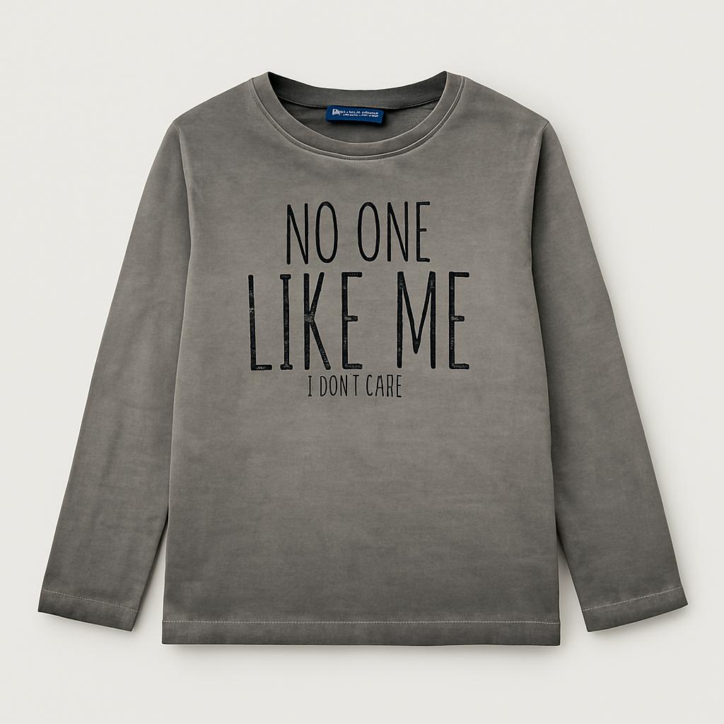 Questa fantastica maglietta a maniche lunghe è perfetta per i piccoli che amano esprimere la loro unicità! In un elegante grigio melange, il tessuto morbido e caldo garantisce comfort durante le fresche giornate. Il frontale presenta la scritta "NO ONE LIKE ME" in glitter, un dettaglio che aggiunge un tocco di personalità e brillantezza. Ideale per creare look casual e trendy, si adatta perfettamente a jeans o pantaloni comfy. Anche se leggermente usata, si presenta in ottime condizioni e pronta per nuove avventure!