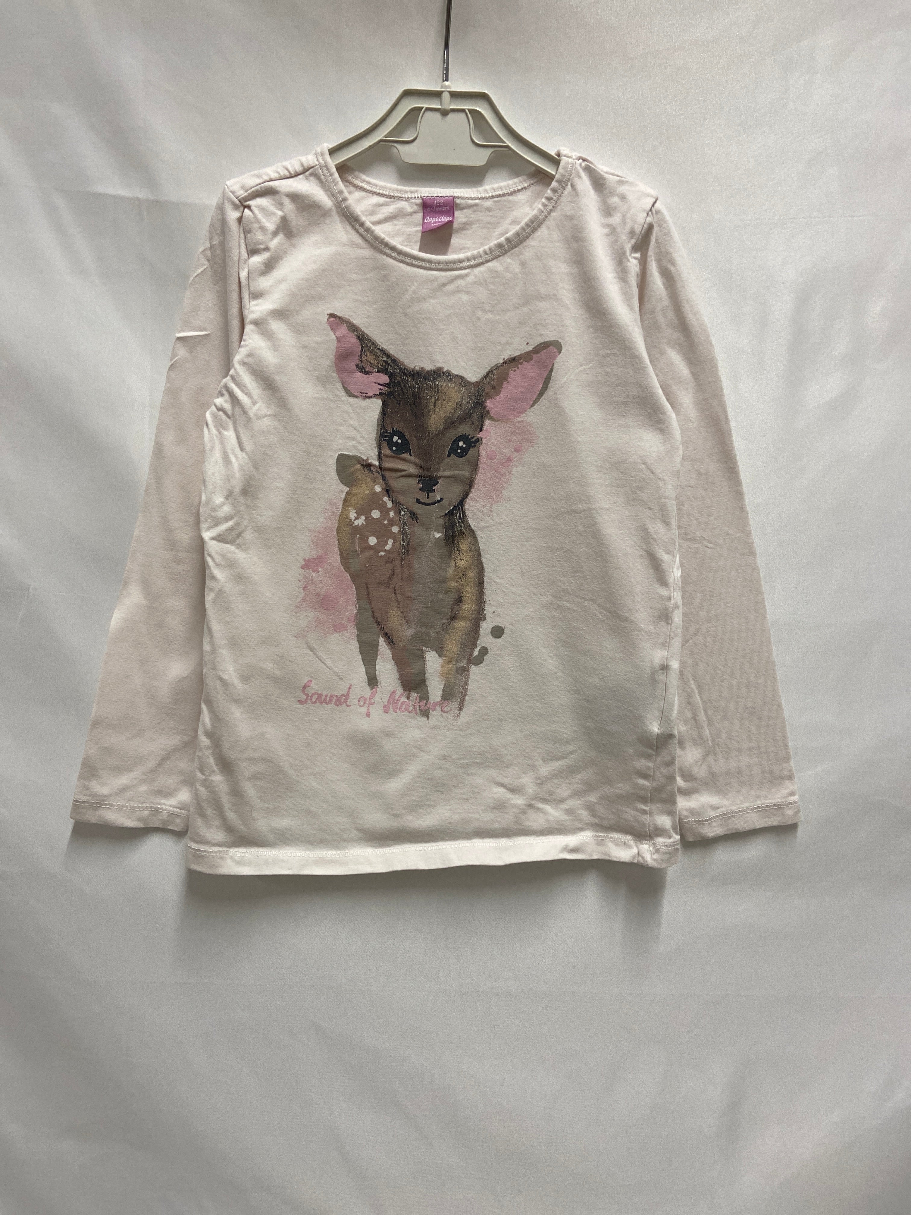 Questa adorabile maglietta a maniche lunghe è perfetta per le piccole amanti della natura! Realizzata in morbido cotone, presenta un'incantevole stampa di un cerbiatto, che conferisce un tocco dolce e delicato. Il colore neutro e il design semplice la rendono facilmente abbinabile a qualsiasi outfit. Ideale per le fresche giornate autunnali o come strato sotto una felpa, è un capo pratico e alla moda. Nonostante sia usata, si presenta in ottime condizioni e pronta per accompagnare la tua bimba in tante avventure!