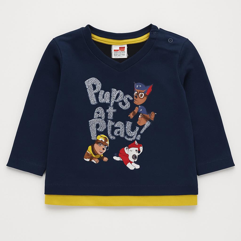 Questo adorabile maglione a maniche lunghe è perfetto per i piccoli fan dei "Paw Patrol"! Realizzato in cotone morbido, offre comfort e calore nelle giornate più fresche. Il color blu navy è accentuato da un vivace bordo giallo, mentre sul davanti spiccano i personaggi amati della serie, rendendo il capo super divertente. Con il suo taglio pratico e le spalle a pressione, è facile da indossare e sfoggiare. Nonostante sia usato, si presenta in ottime condizioni, pronto per accompagnare il tuo bimbo in incredibili avventure!