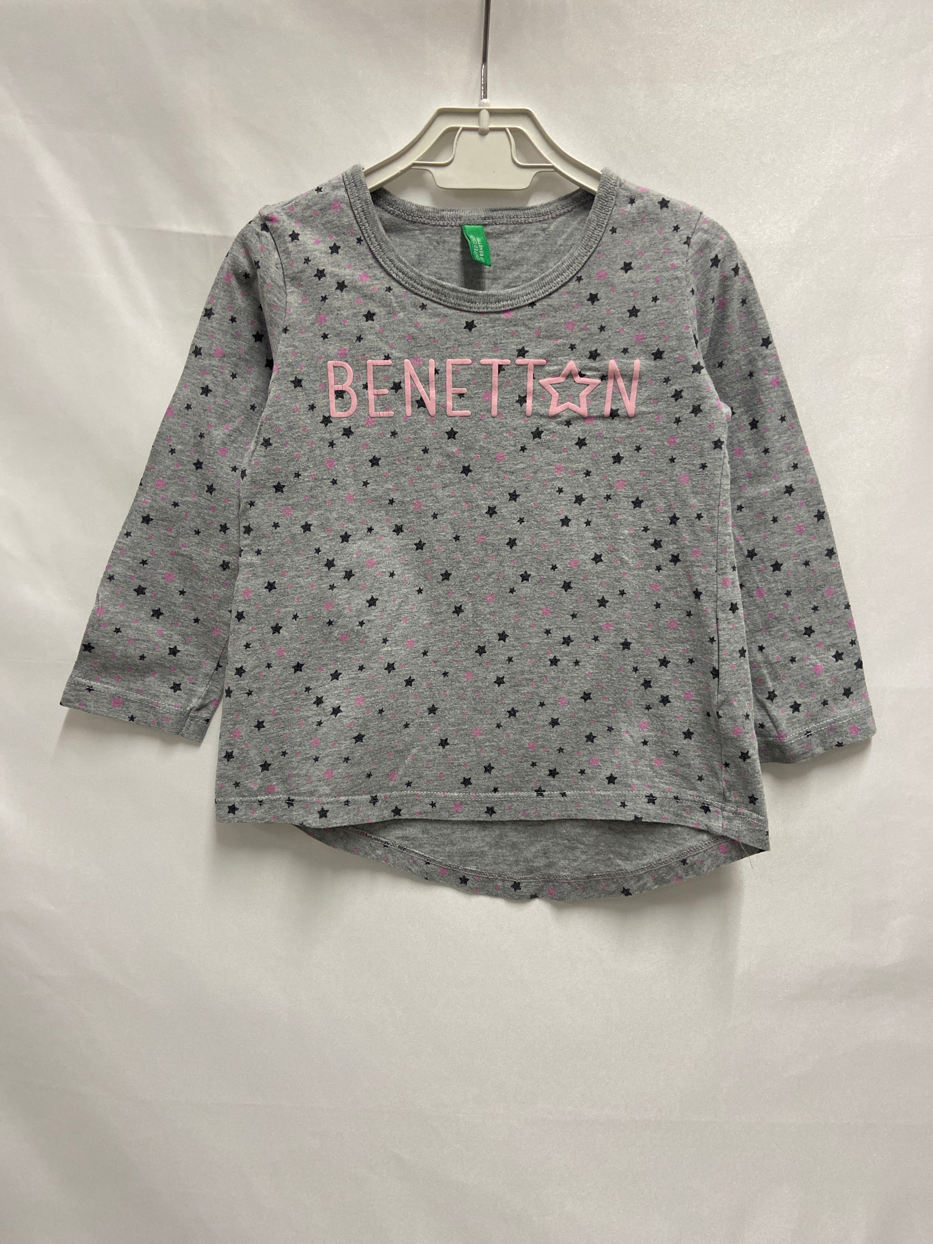 Questa adorabile maglietta di Benetton è perfetta per le piccole stelle di casa! Realizzata in morbido cotone grigio, è decorata con un delizioso motivo di stelle nere e un tocco di rosa brillante per una dose extra di charme. La scritta "BENETTON" in un dolce rosa e la sua lunghezza leggermente allungata sul retro la rendono sia trendy che pratica. Le maniche lunghe la rendono una scelta ideale per autunno e primavera, facilmente abbinabile a leggings o jeans. Nonostante sia un capo usato, si presenta in ottime condizioni, pronta per far brillare il guardaroba della tua piccola!