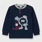 Questo adorabile maglione blu scuro è perfetto per i piccoli che amano divertirsi anche quando fa fresco! Realizzato in morbido cotone, offre un comfort ideale per ogni avventura. La maglia presenta un simpatico disegno di un orologio con un sorriso che dice "sei in ritardo!", aggiungendo un tocco di allegria e giocosità al look. Le maniche lunghe e il collo a bottoni assicurano praticità e stile, rendendo questo capo perfetto per le giornate autunnali. Nonostante sia usato, è in ottime condizioni e pronto per essere indossato da un piccolo esploratore!