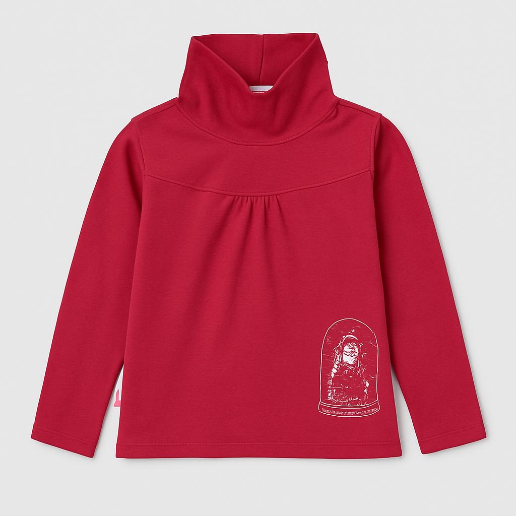 Questa graziosa maglietta con cappuccio in un vivace color rosso rubino è perfetta per le piccole fashioniste! Realizzata in cotone morbido, garantisce comfort e libertà di movimento. Il design elegante presenta una delicata arricciatura sul davanti e una divertente stampa sul lato, che aggiunge un tocco di originalità. Le maniche lunghe la rendono ideale per le giornate fresche, perfetta per l'uso quotidiano o avventure all'aperto. Sebbene sia un capo usato, è in ottime condizioni e pronto ad accompagnare ogni piccola esploratrice nel suo percorso di stile!