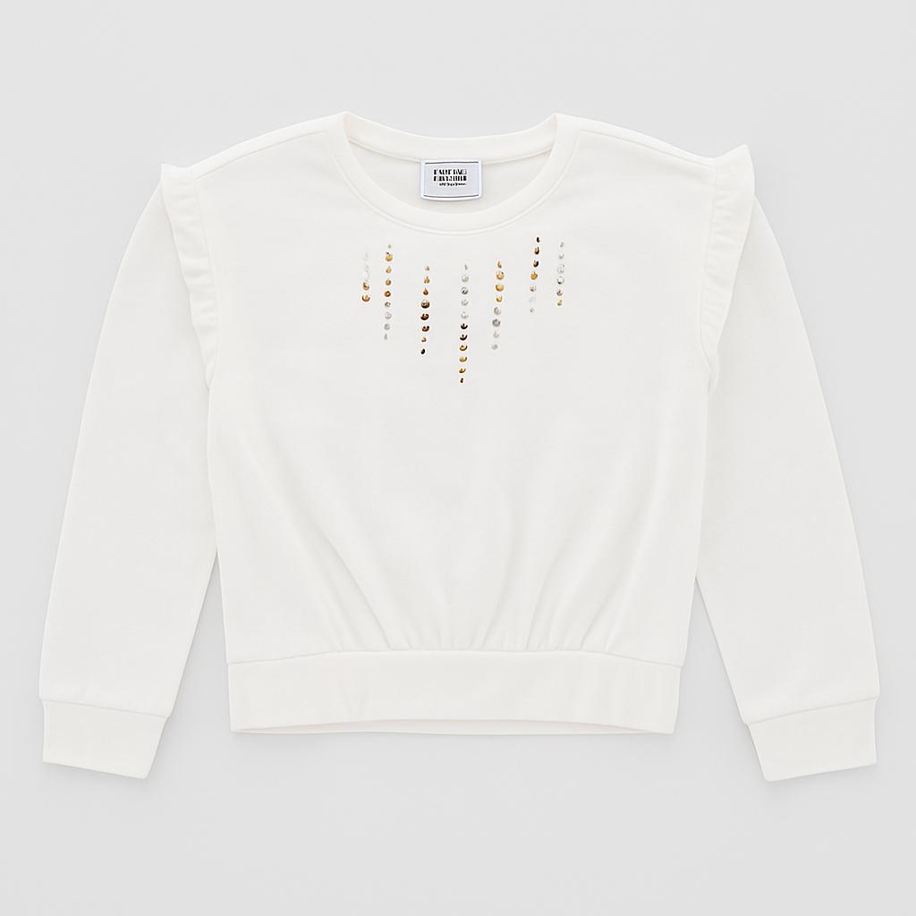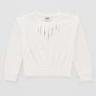 Questo adorabile maglione bianco è perfetto per le piccole che amano un look fresco e chic! Realizzato in un morbido cotone, presenta delicati dettagli con paillettes che brillano sul petto, aggiungendo un tocco di eleganza. Le maniche lunghe sono decorate con frange, che donano un'aria giocosa e trendy. Il taglio svasato nella parte inferiore garantisce comfort durante il gioco e le attività quotidiane. Nonostante sia un capo usato, si presenta in ottime condizioni e porterà certamente un tocco di stile nel guardaroba della tua piccola!
