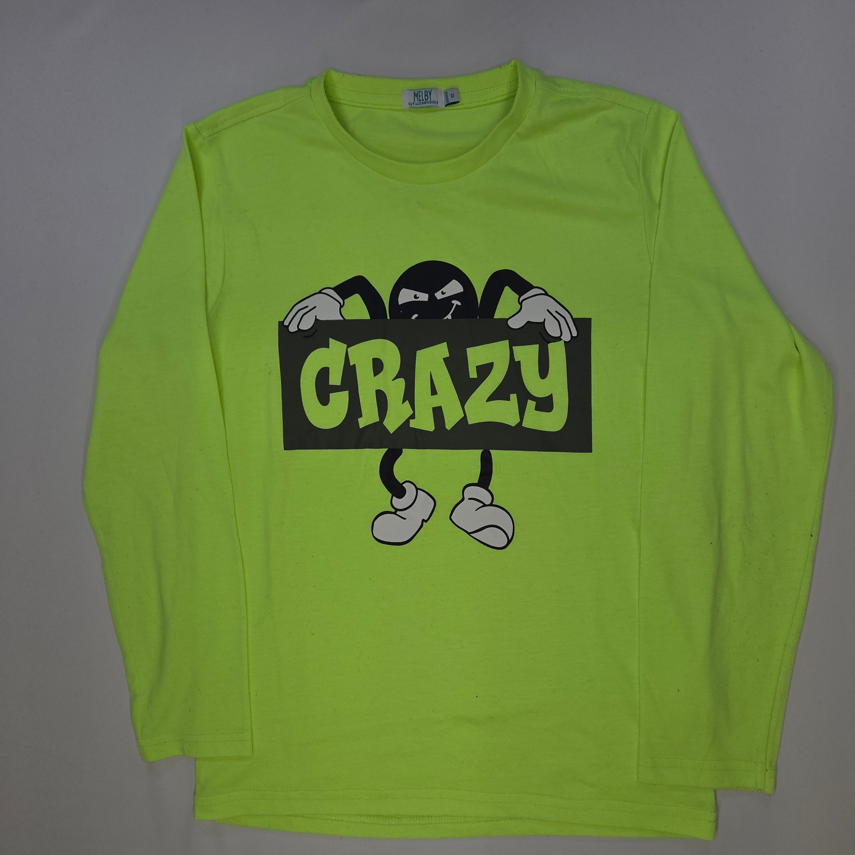 Questa maglietta a maniche lunghe è un vero colpo di stile per i piccoli esploratori! Di un vivace colore giallo fluo che cattura l'attenzione, presenta un divertente design con un personaggio che regge la scritta "CRAZY". Realizzata in un tessuto morbido, è perfetta per ogni avventura, dalle giornate al parco ai momenti di gioco in casa. Le maniche lunghe garantiscono comfort e calore durante le fresche serate. Nonostante sia usata, si trova in ottime condizioni e pronta a portare un tocco di allegria nel guardaroba! Un capo ideale per i bambini che amano esprimere la loro personalità!