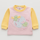 Questa adorabile maglietta a maniche lunghe sarà perfetta per il guardaroba della tua piccola! Realizzata in morbido cotone, presenta un delizioso mix di colori pastello, con una base rosa e maniche gialle. Sul fronte, un grazioso ricamo di anfibi e farfalle porta un tocco di magia e natura. I bottoni sul retro ne facilitano l’indossabilità, rendendola pratica per ogni occasione. Anche se è un capo usato, si trova in ottime condizioni e pronta a far sorridere la tua bambina! Ideale per le giornate fresche e per aggiungere un tocco giocoso al suo look quotidiano!
